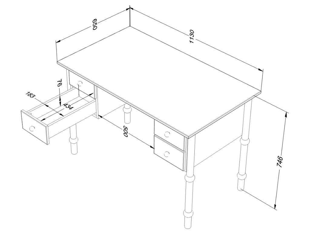 | Rozměr: | šířka 113 cm x výška 75 cm x hloubka 65 cm, šířka mezi šuplíky 50 cm |