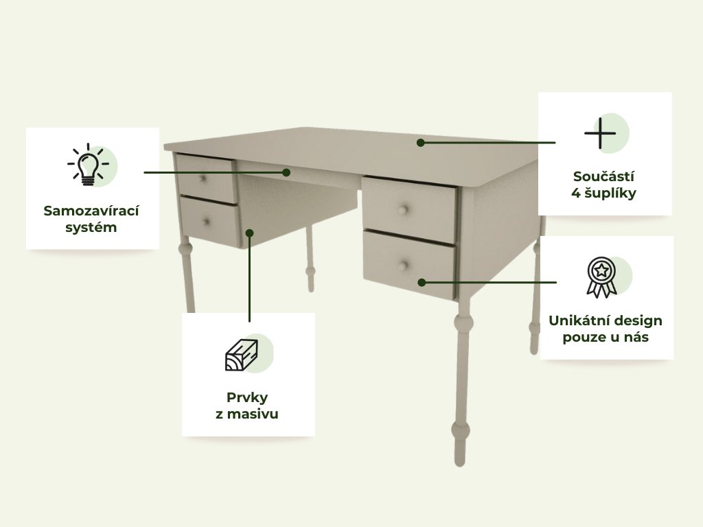 Dětský psací stůl se šuplíky BABUSHKA olivový