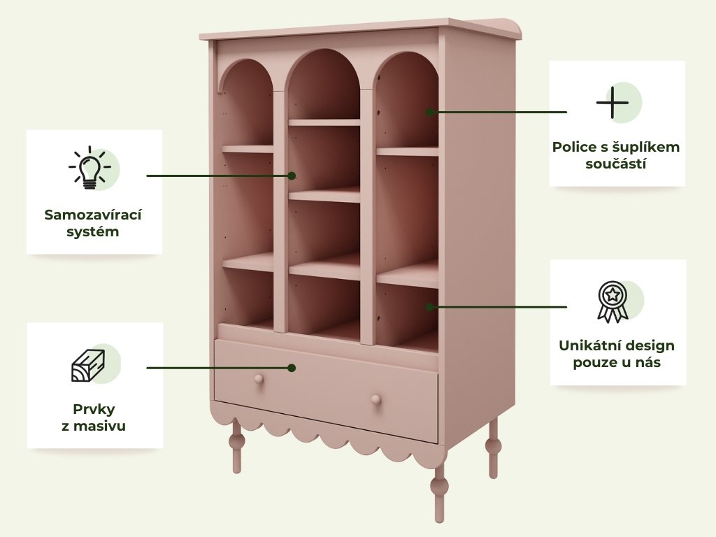 | Materiál: | laminované melaminové desky, MDF, prvky z bukového dřeva |