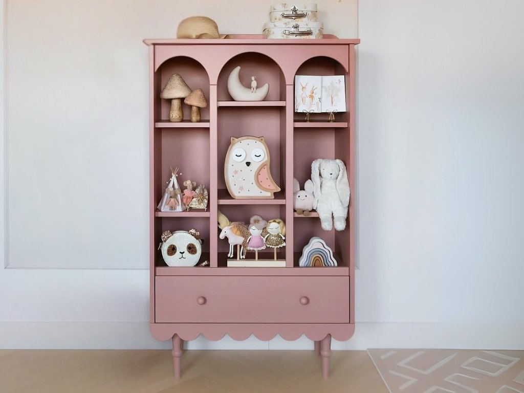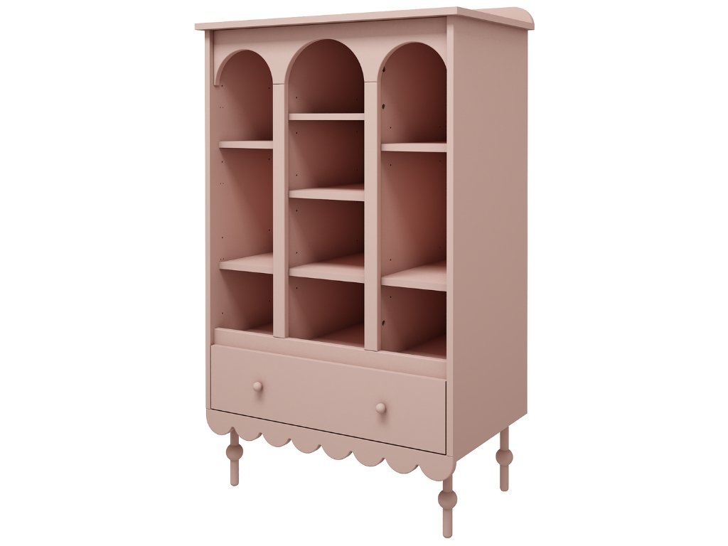 Dětský úložný regál s policemi a šuplíkem BABUSHKA korálový