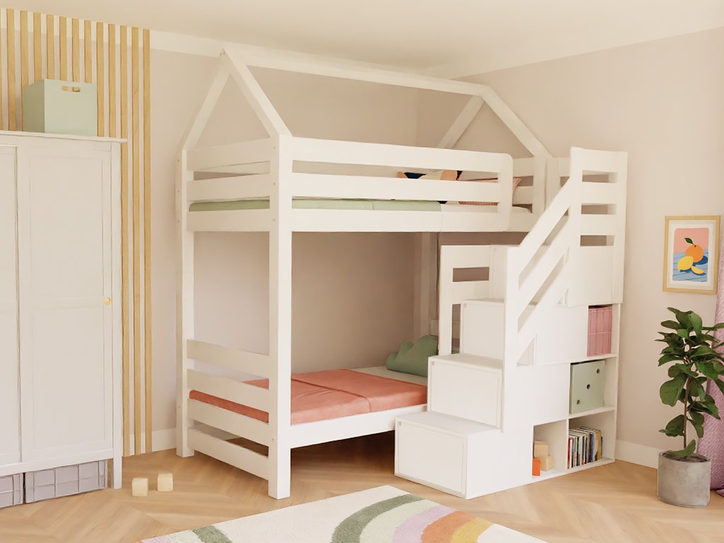 Domečková patrová postel ALPY s předními úložnými schody 90x200 cm