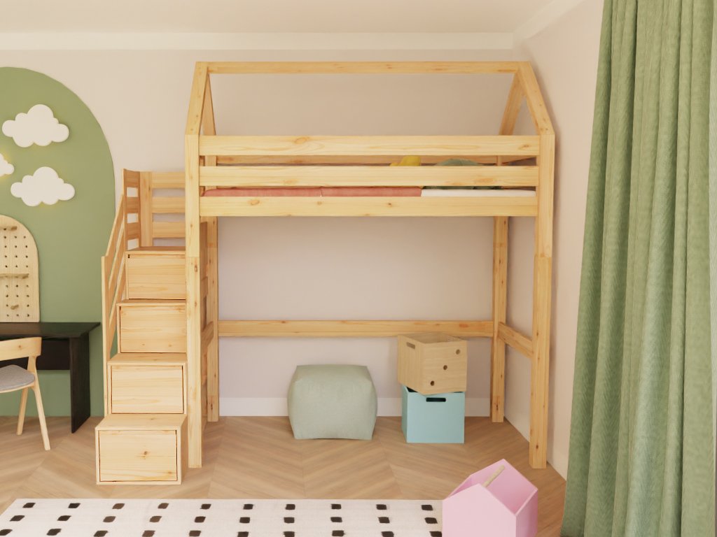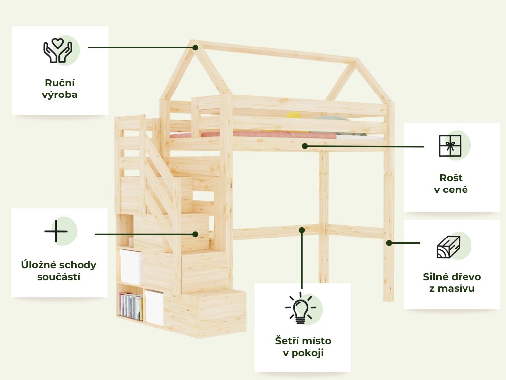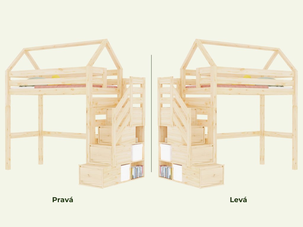 | Speciální vlastnosti: | ruční výroba, spousta úložného prostoru, schody lze namontovat na levou i pravou stranu, šuplíky jsou plně výsuvné |
