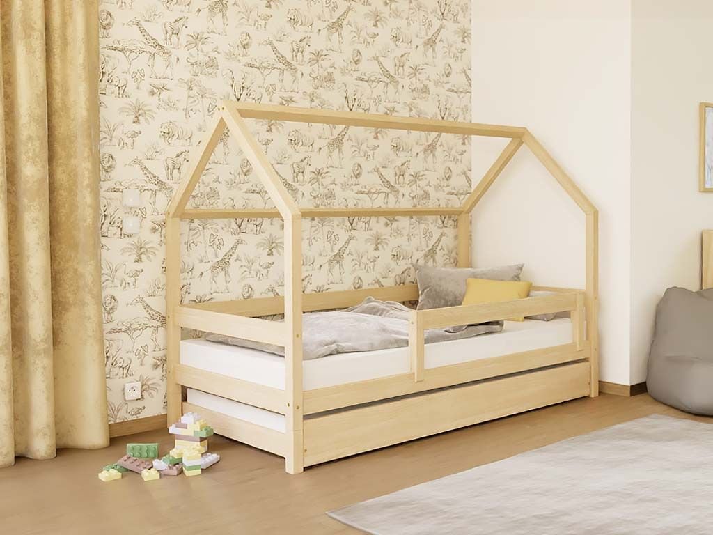 Dřevěná výsuvná přistýlka SLEEP pod postel na kolečkách s vysokým čelem
