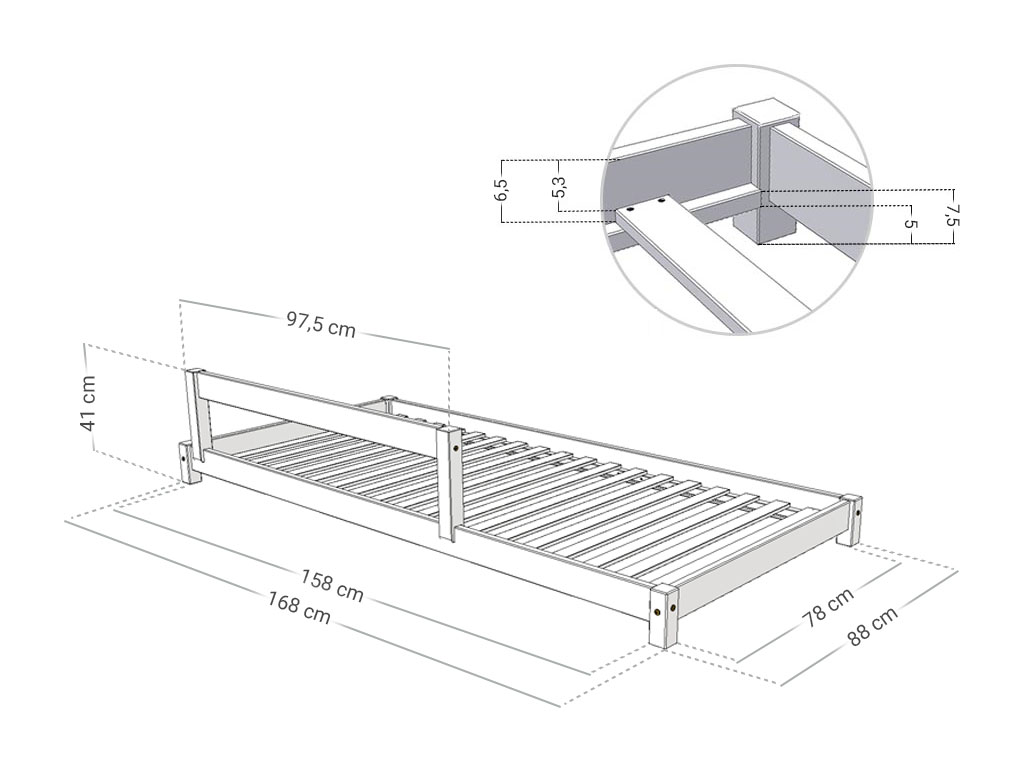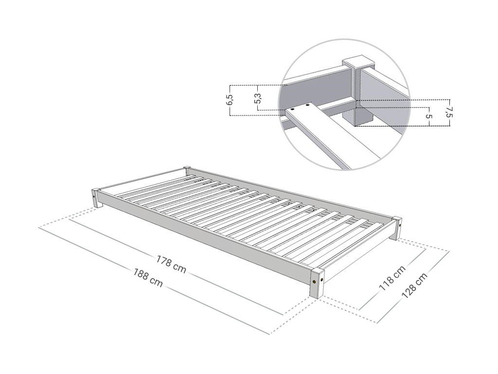 Zvolený rozměr odpovídá vnitřnímu prostoru postele a zároveň rozměrům vhodné matrace.