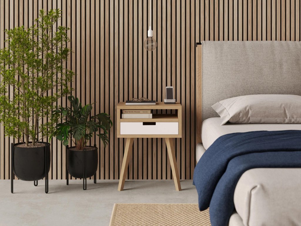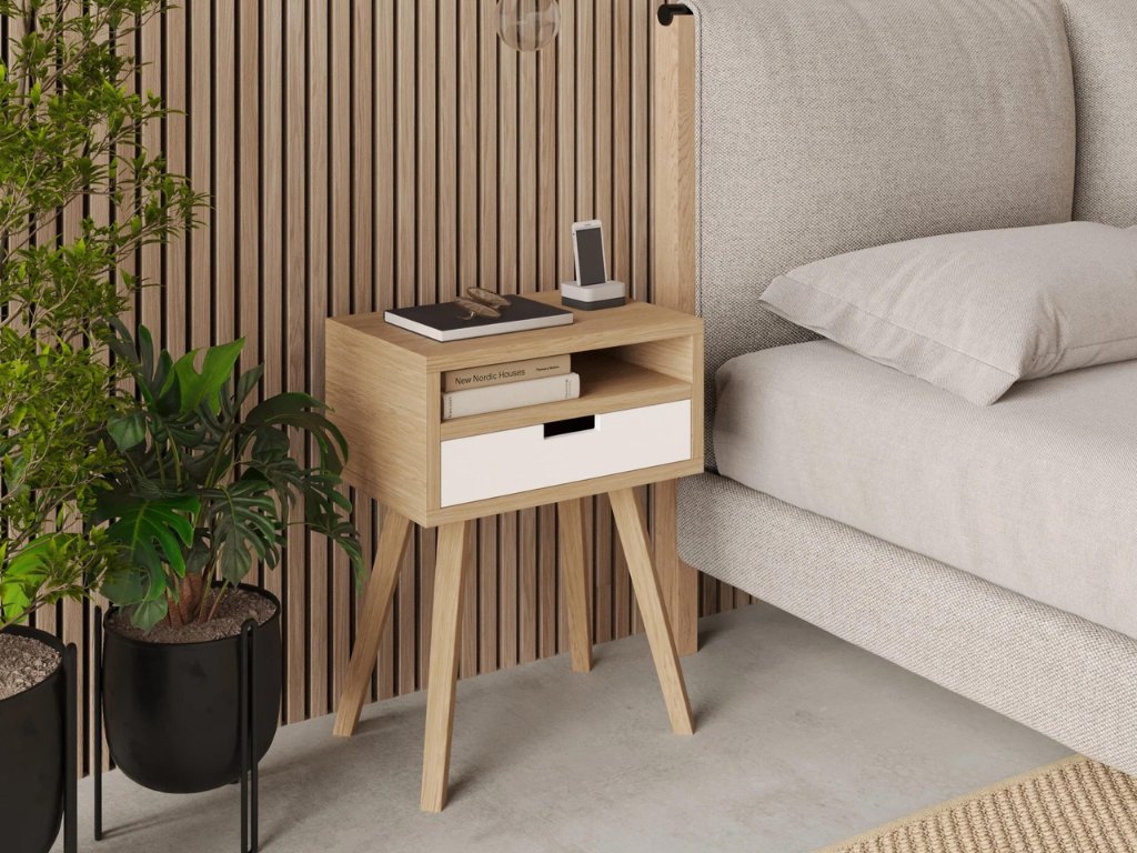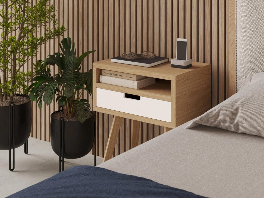 Dřevěný noční stolek ve scandi stylu HYLLE bílý