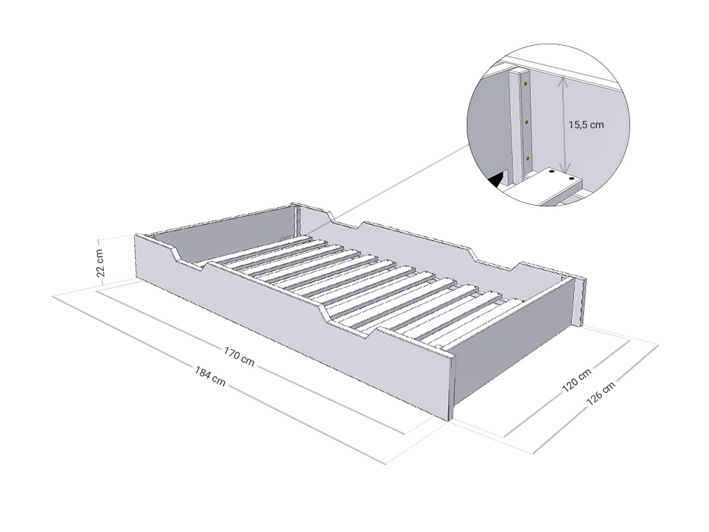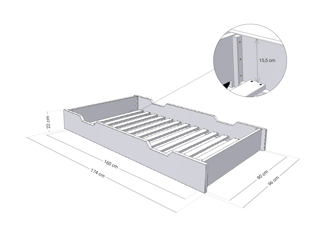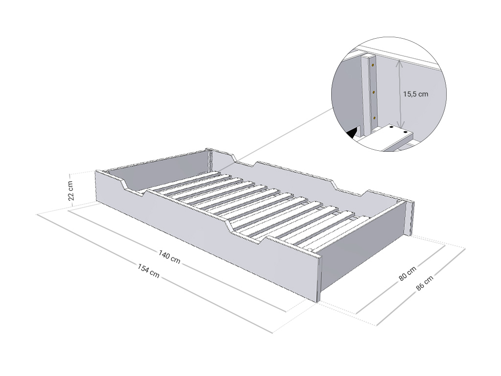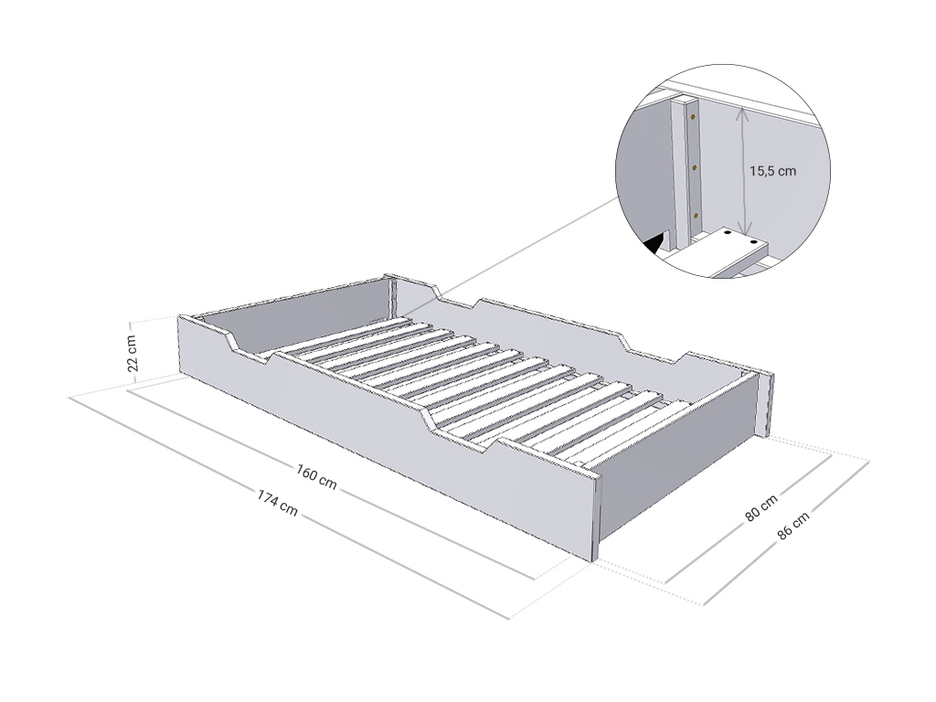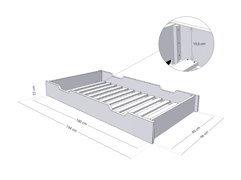 | Délka šuplíku: | o 20 cm méně než postel, pod kterou jej chcete |