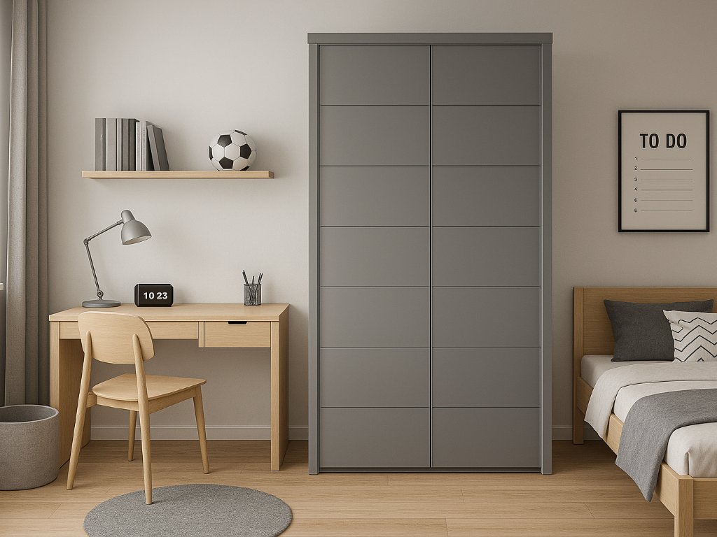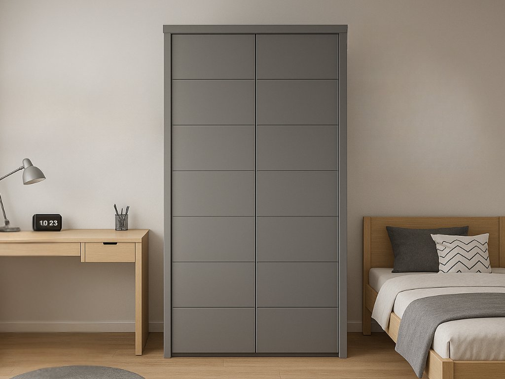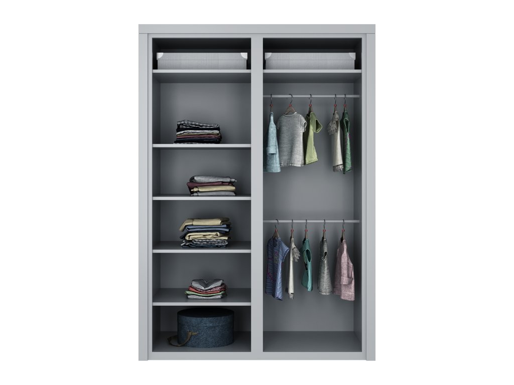 Dvoudveřová šatní skříň s policemi a šatními tyčemi SIMONE šedá