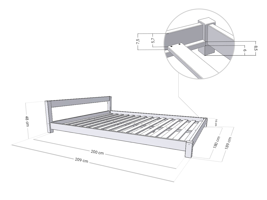 Zvolený rozměr odpovídá vnitřnímu prostoru postele a zároveň rozměrům vhodné matrace.
