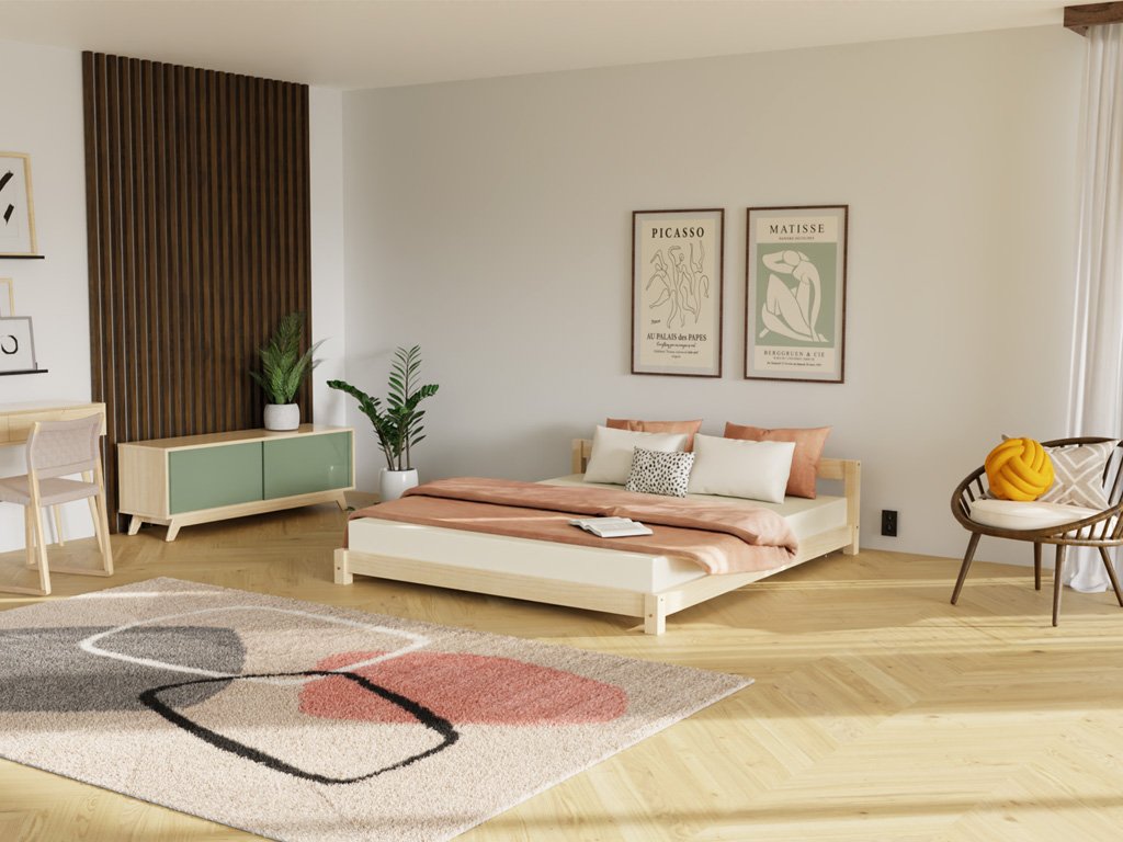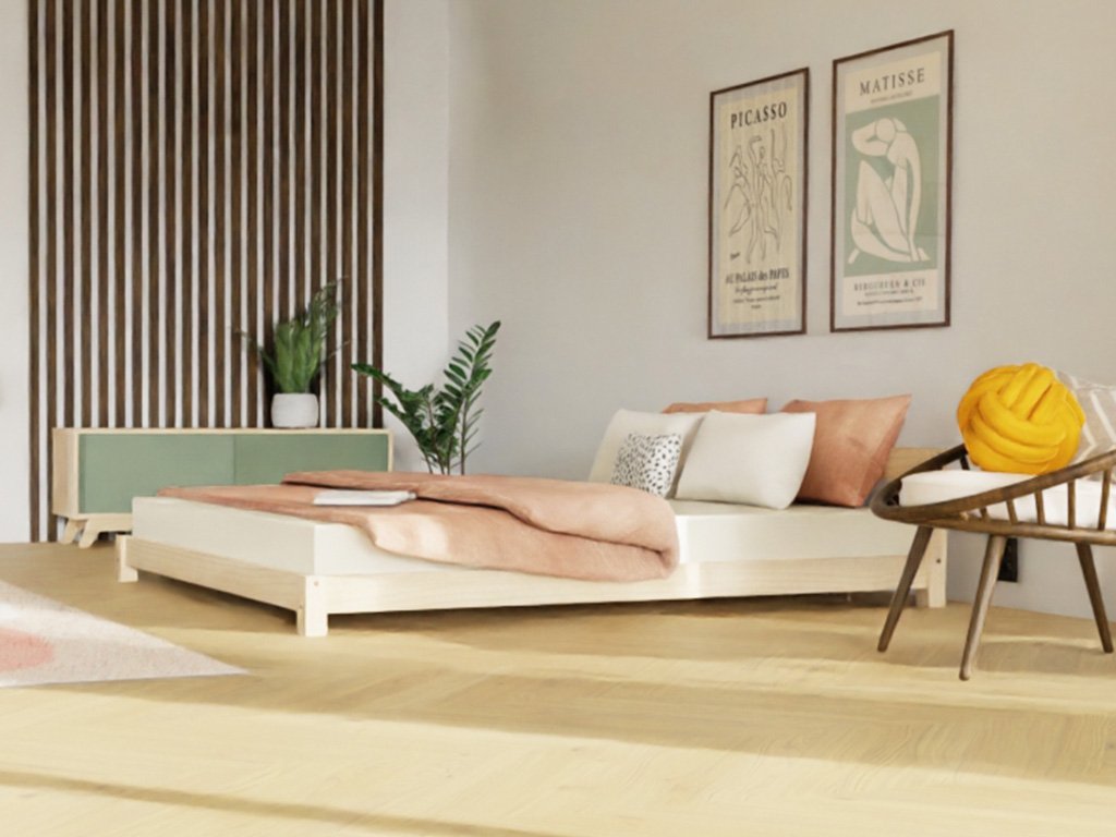 Dvoulůžková dřevěná postel COMFY ve scandi stylu