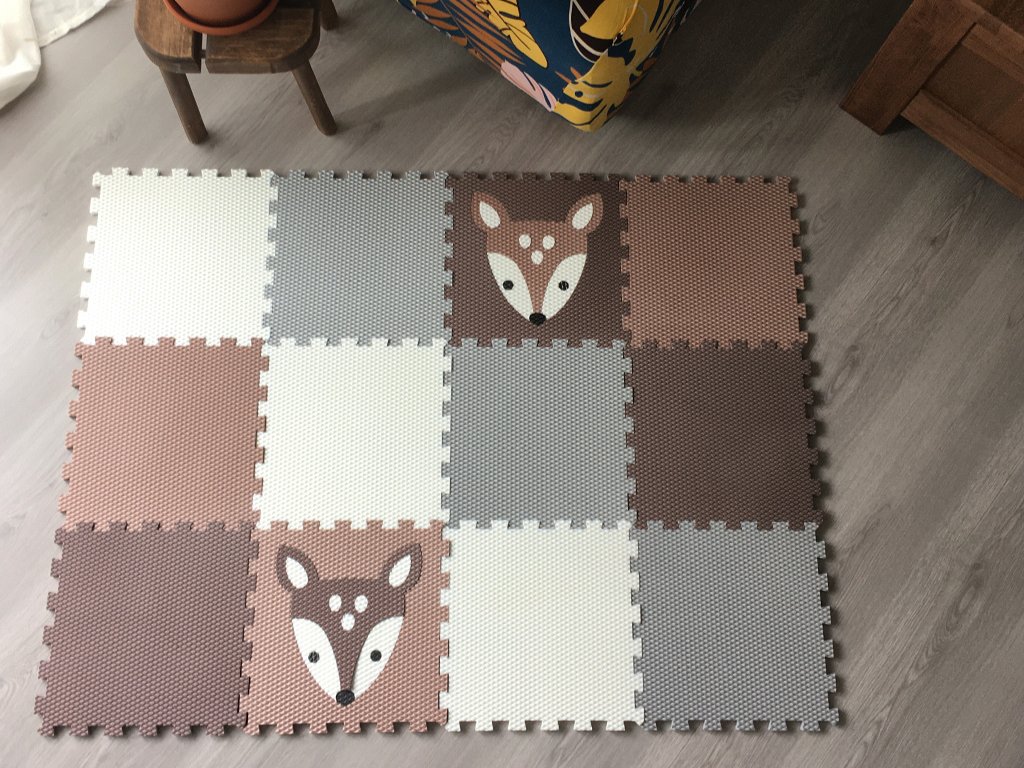 | Sada obsahuje: | 12 pěnových puzzle podložek (1 koloušek hnědý, 1 koloušek tmavě hnědý, 2 puzzle hnědé, 2 puzzle tmavě hnědé, 3 puzzle bílé, 3 puzzle světle šedé) |