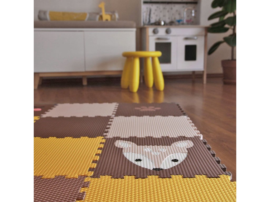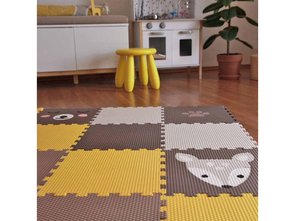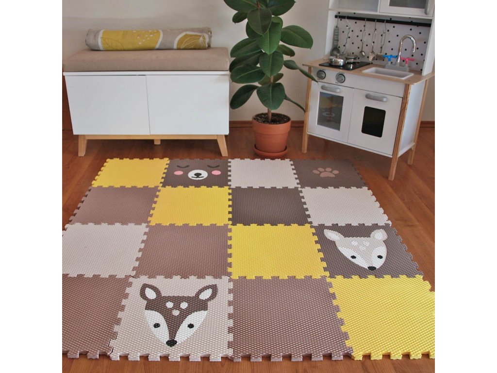 Hrací pěnové puzzle do dětského pokoje 16 dílů ŽLUTO-HNĚDÉ