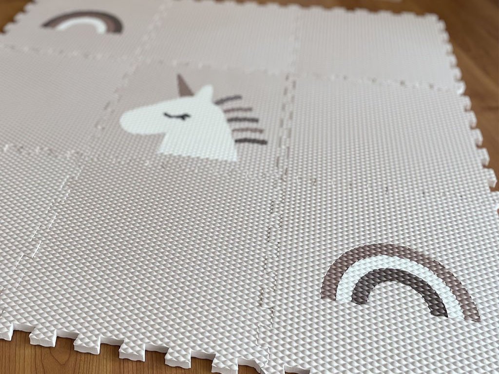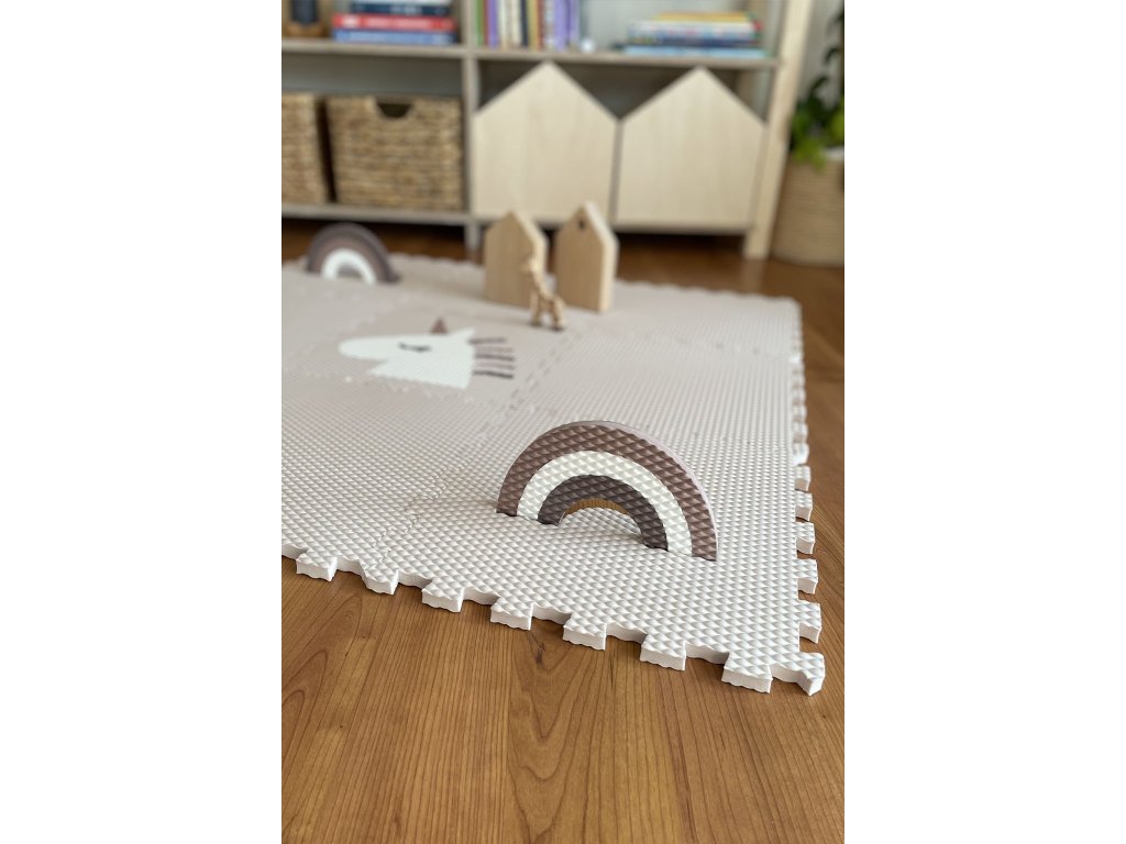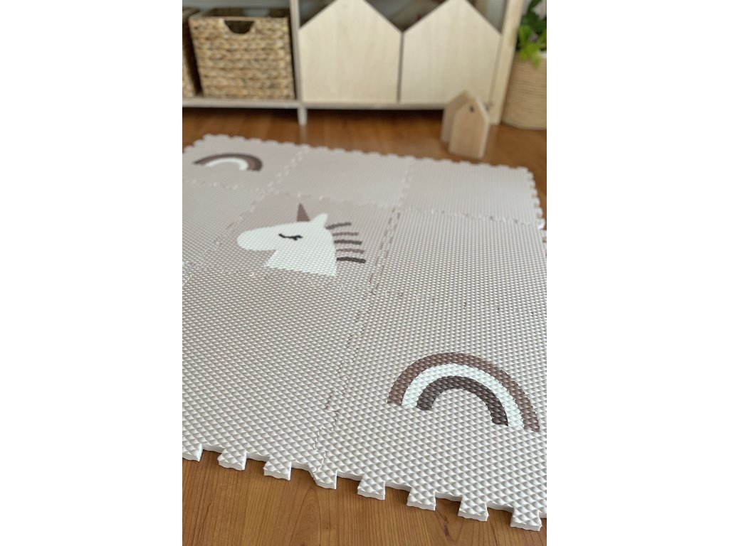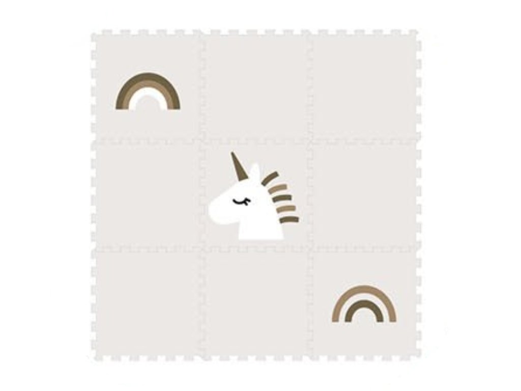 | Sada obsahuje: | 9 podlahových dílů (6 ks krémový, 2 ks krémový s duhou v odstínech hnědé, 1 ks krémový s bílým jednorožcem) |