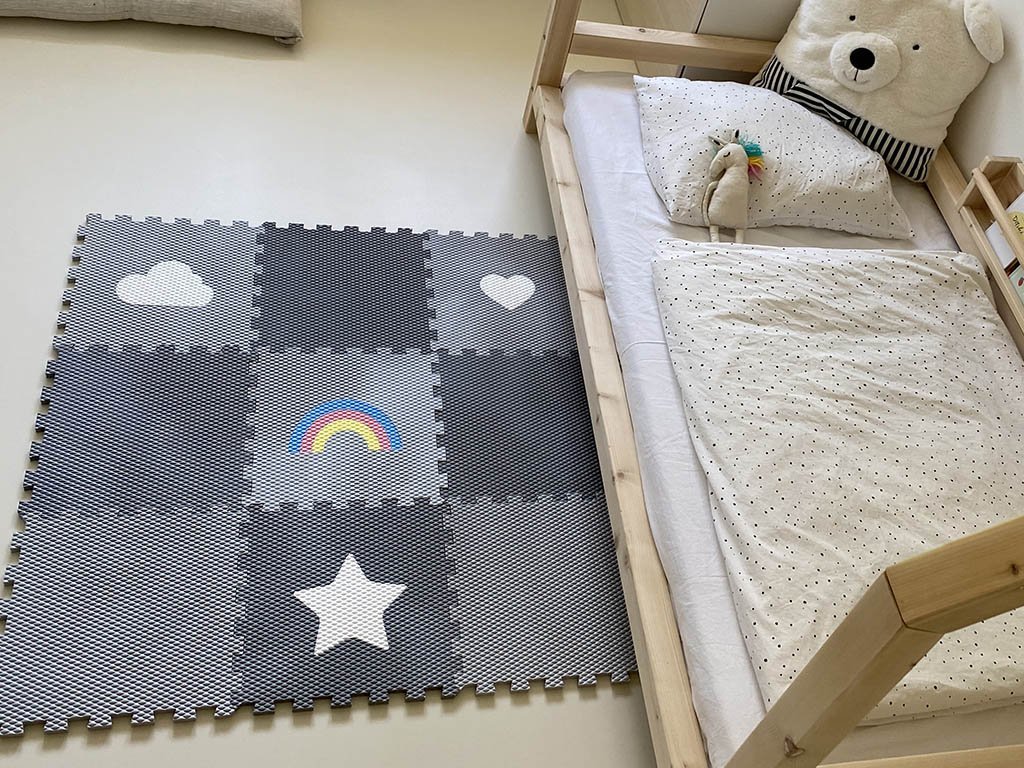 | Speciální vlastnosti: | příjemný na dotek, výborné izolační vlastnosti, díky unikátnímu systému zámků se puzzle nerozjíždí, originální dekorace do dětského pokoje |