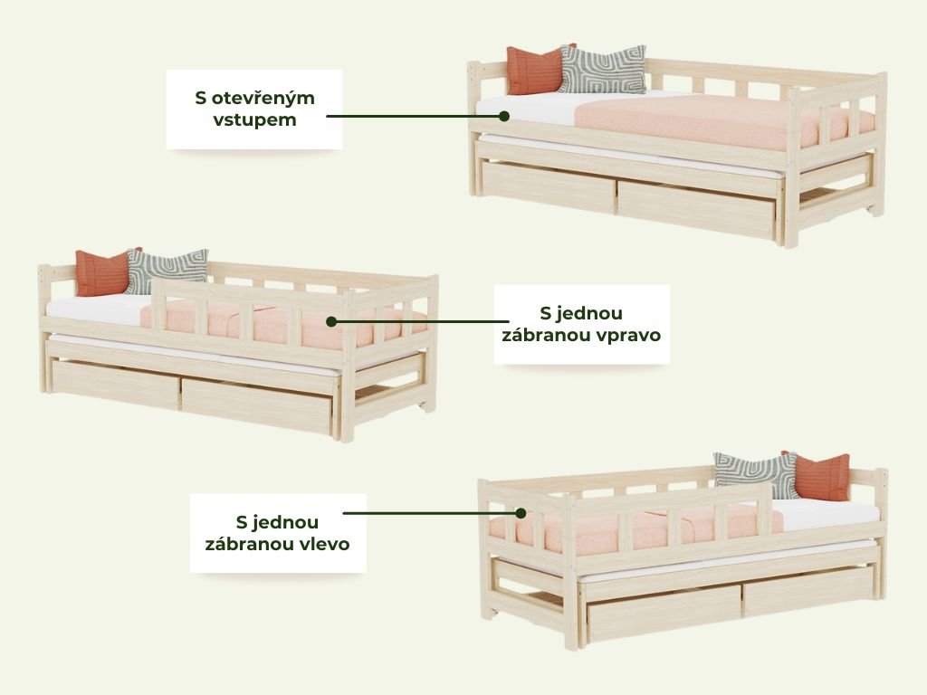 | Vlastnosti produktů: | Se šuplíkem, Se zábranou, S přistýlkou, S přistýlkou i šuplíkem |