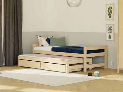 Jednolůžko FENCE 90x200 3v1 se zábranou, přistýlkou a 2 úložnými šuplíky