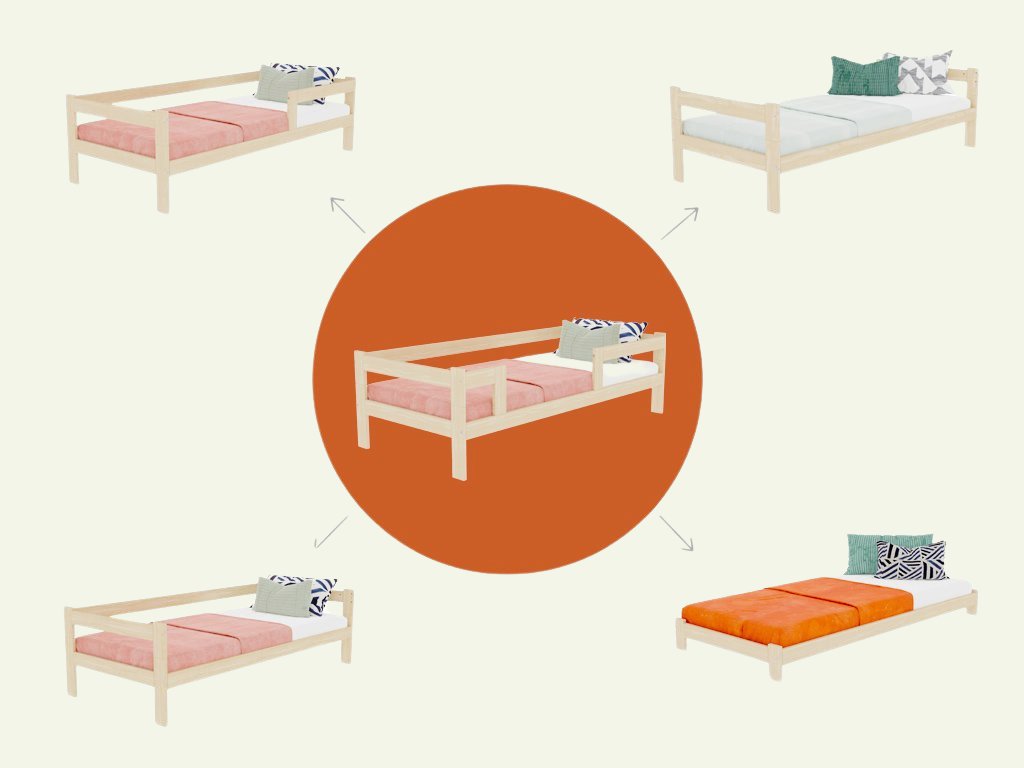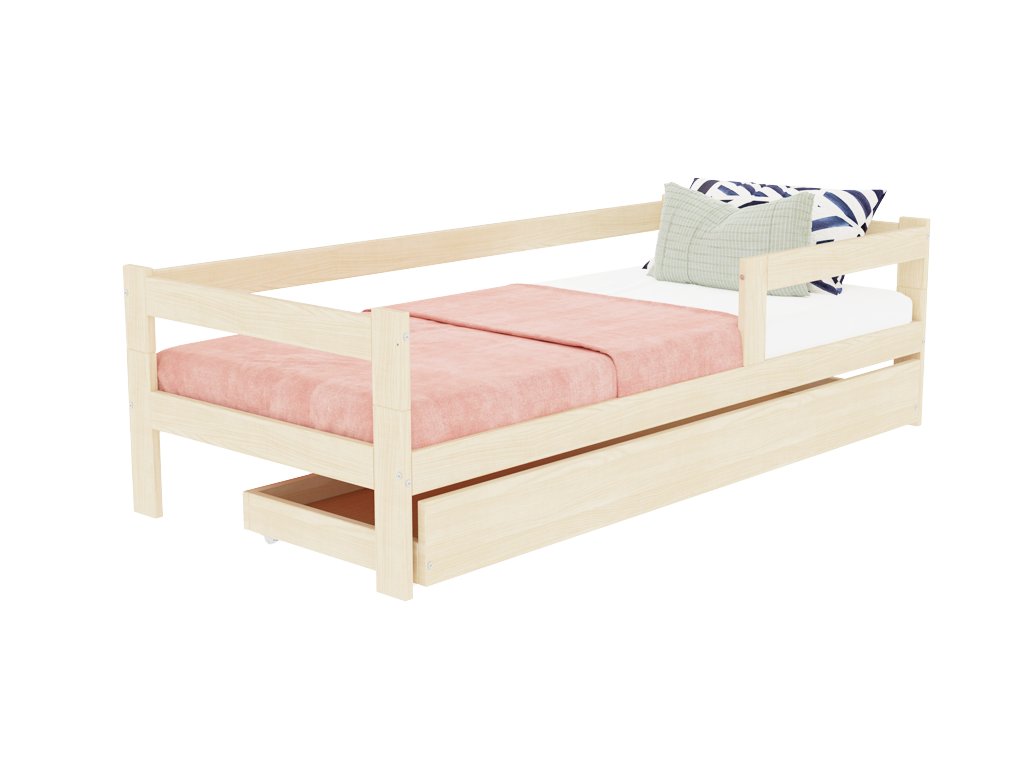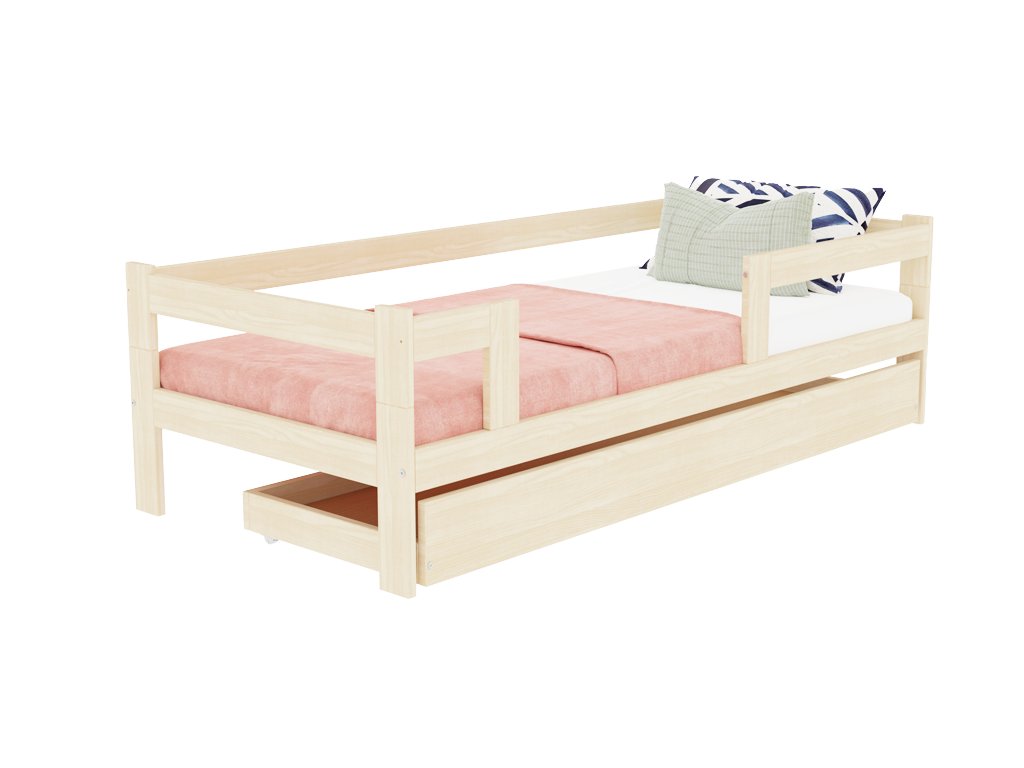 Jednolůžková postel ze dřeva SAFE 5v1 se zábranou a úložným šuplíkem