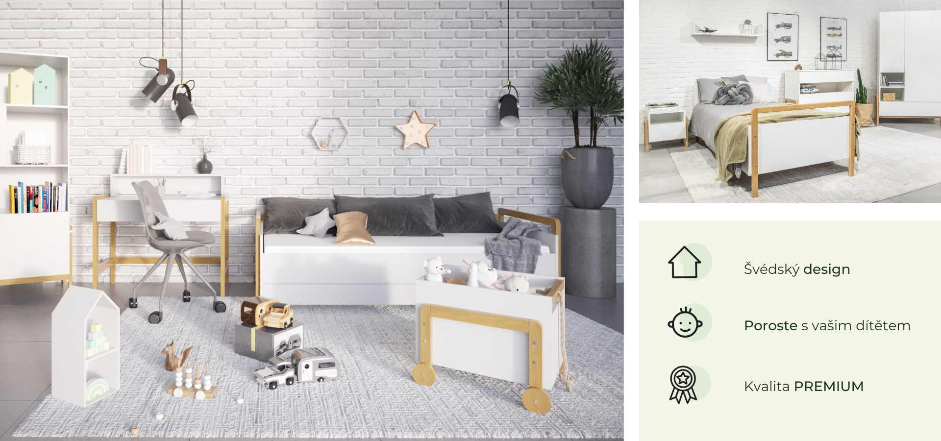 Bílá dětská postel VICTOR s matrací a úložným prostorem 1
