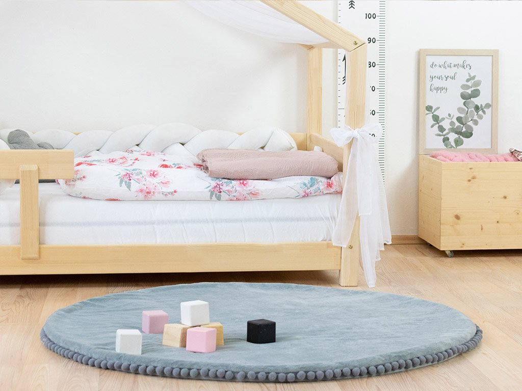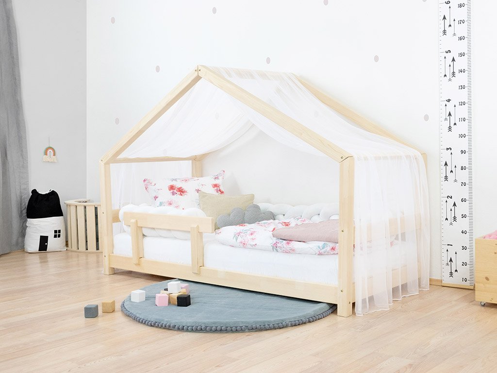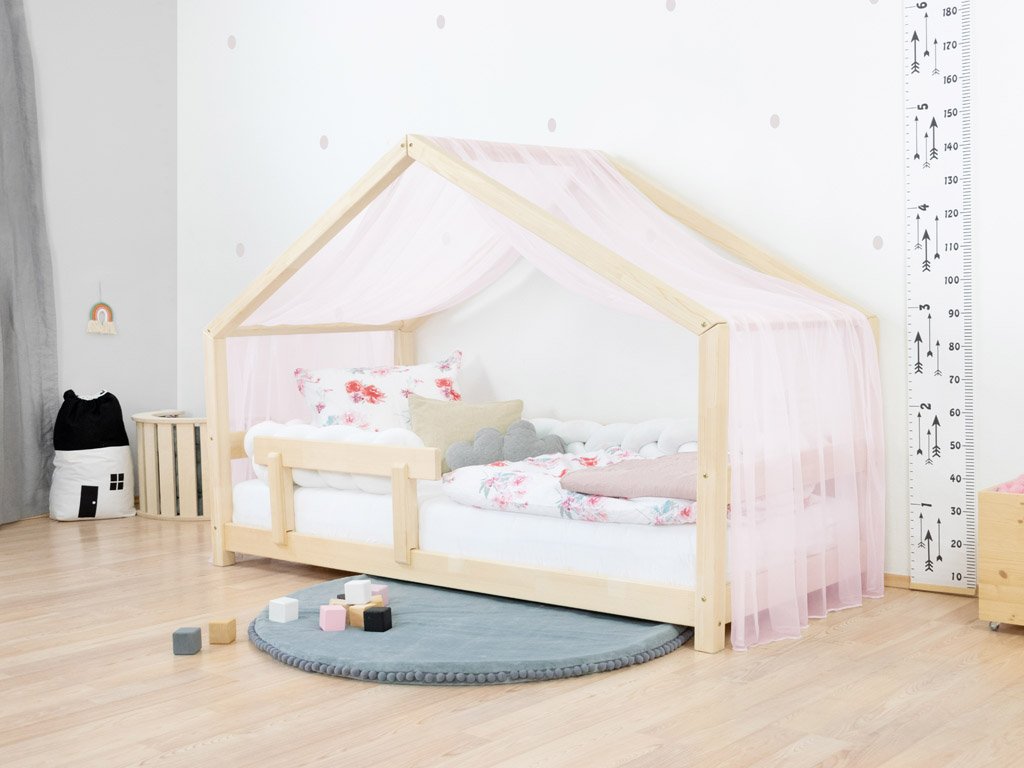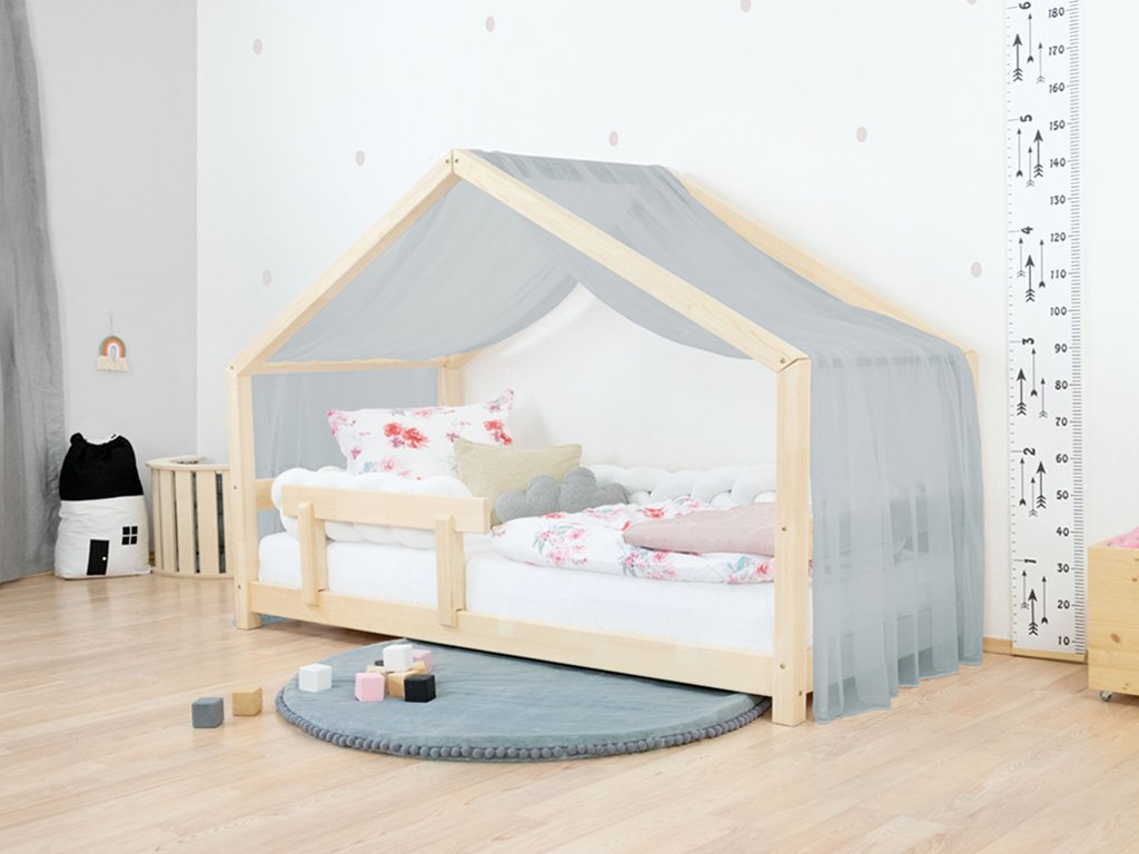 Lehká šifónová stříška na domečkové postele s předním štítem