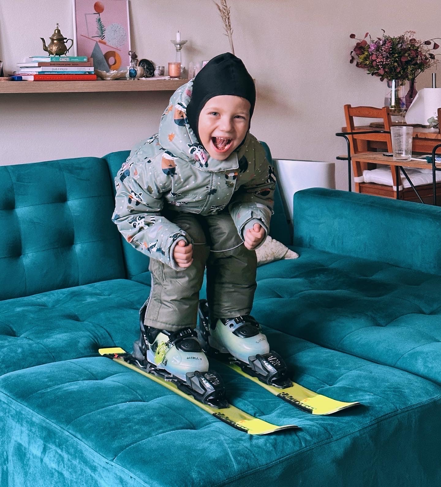 Protože jsem naposledy lyžovala před dvaceti lety a od té doby jezdím skoro jen na snowboardu, úplně prapůvodní nápad byl takový, že Doriho ve 4 letech postavím tedy rovnou na prkno. Ostatně, na instagramu je roztomilých batolátek na miniaturním prkýnku všude plno, takže to nebude problém.