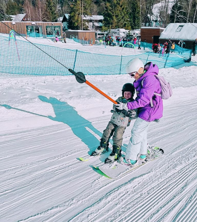 Ještě jedno doporučení k dětským kopečkům. Ty nejmenší bývají se dvěma různými druhy lanovek – buďto s jezdícím koberečkem nebo tažným lanem. Jestli jste už sami na laně jeli, víte možná, že je to fyzicky úplně nejnáročnější lanovka vůbec. Dori měl v takovém středisku po 10 jízdách ruce úplně v háji a plakal, že by chtěl ještě lyžovat, ale už nemá sílu vyjet nahoru. Koberečky už ani u nás nejsou žádná rarita, a tak až budete středisko na první jízdy hledat, zkuste si zjistit, jestli tam jsou.
