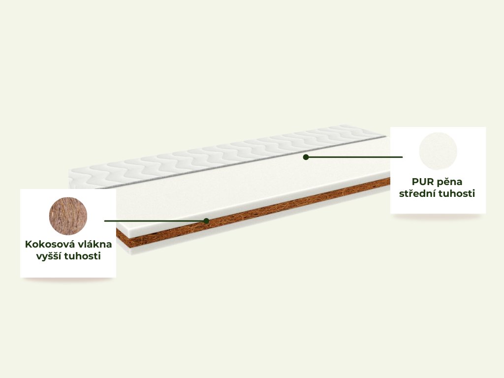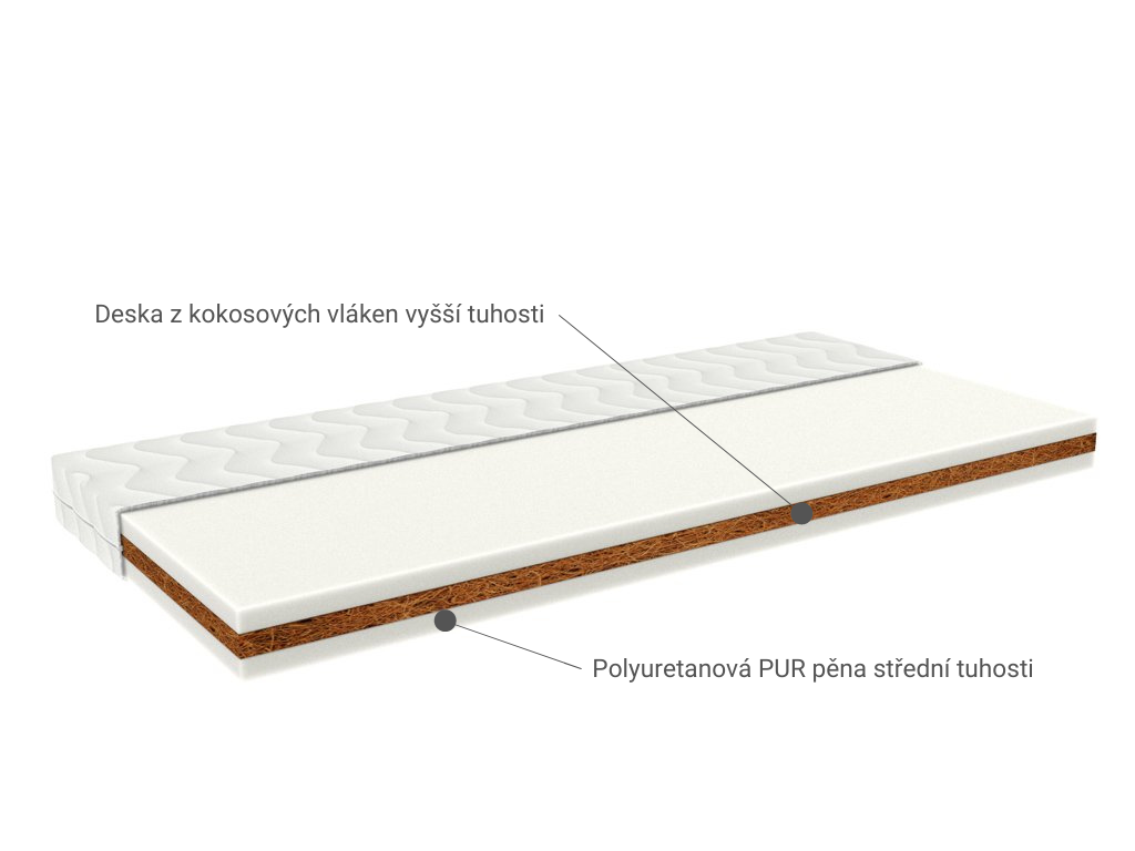 | Střední vrstva: | plocha z kokosových vláken vyšší tuhosti |
