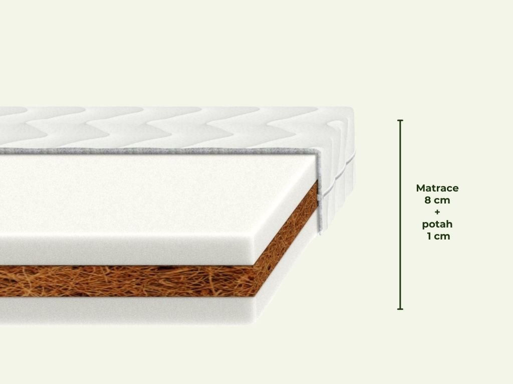 | Výška matrace včetně potahu: | 8 cm + 1 cm |