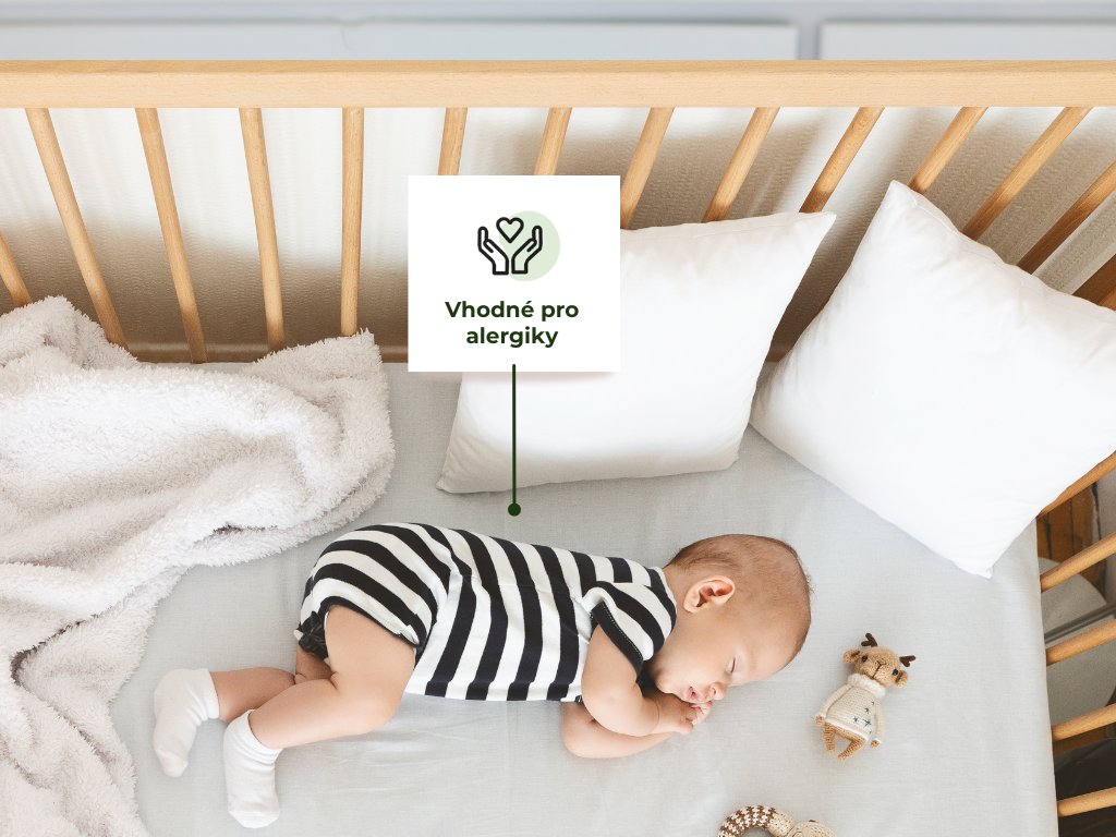 Pěna udrží svůj tvar, ať bude vaše miminko spinkat jakkoliv. Antialergenní pěny spojujeme lepidlem na přírodní bázi.