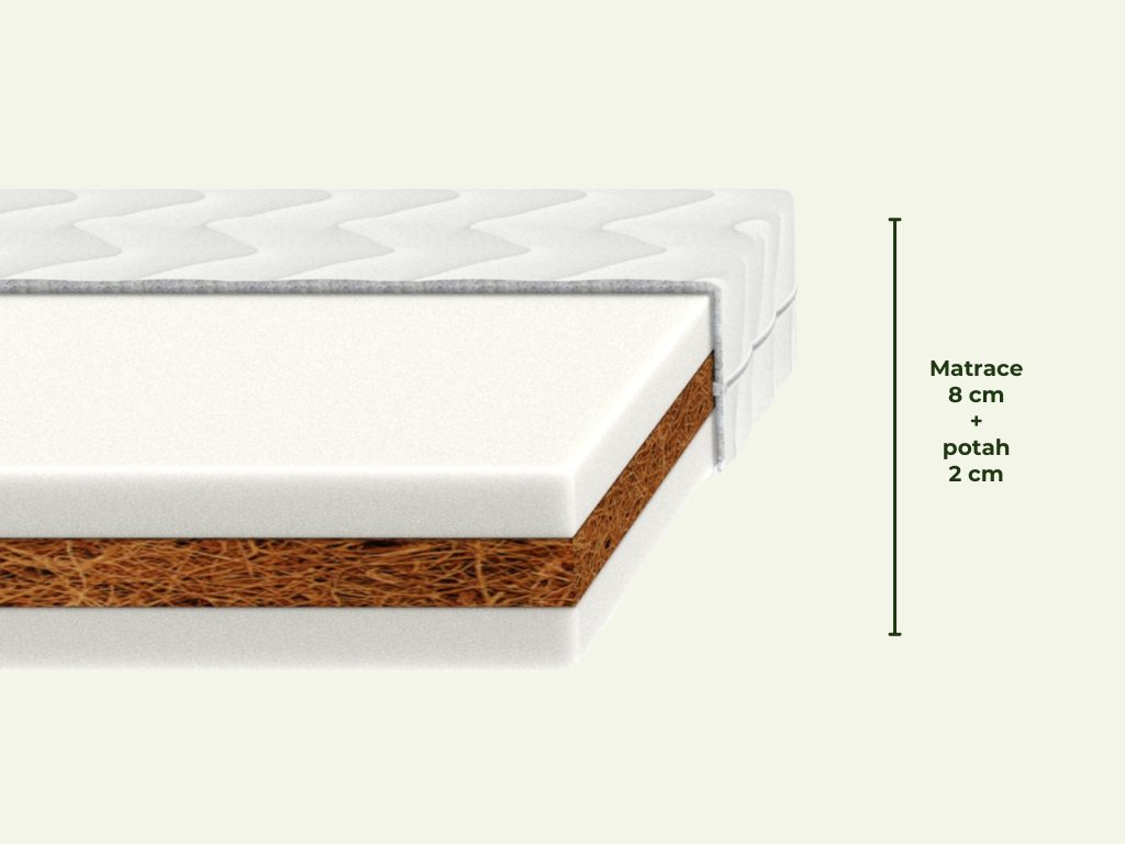 | Výška matrace včetně potahu: | 8 cm + 2 cm |