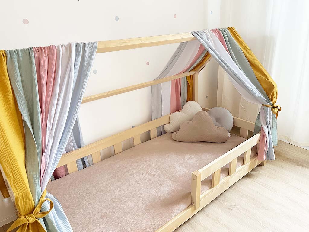 Mušelínová stříška na domečkovou postel DUHOVÁ