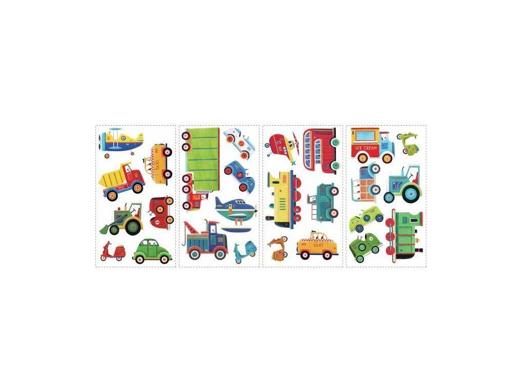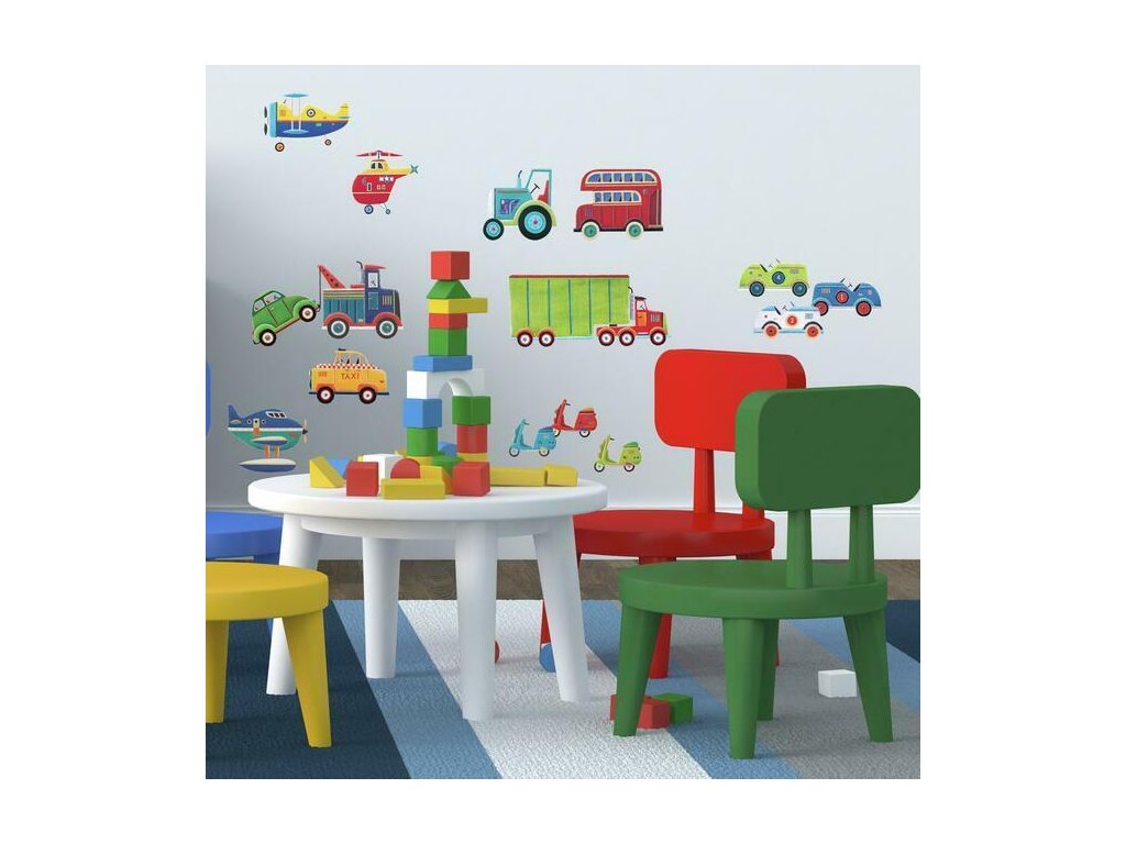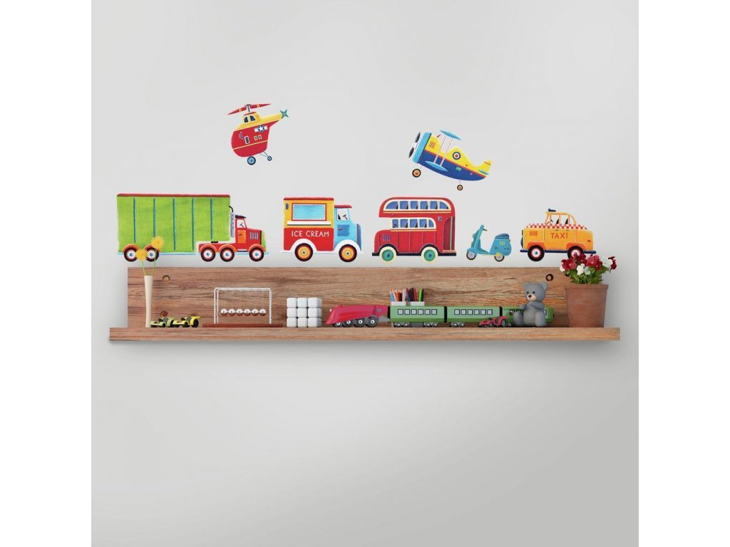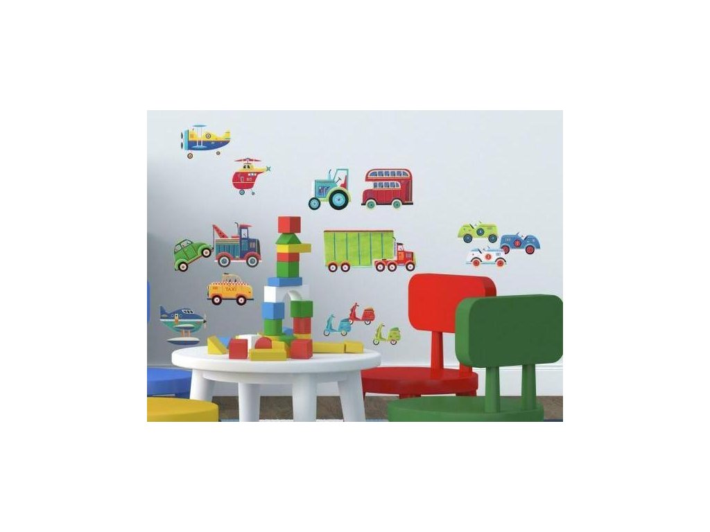 Nálepky na zeď do dětského pokoje DOPRAVNÍ PROSTŘEDKY