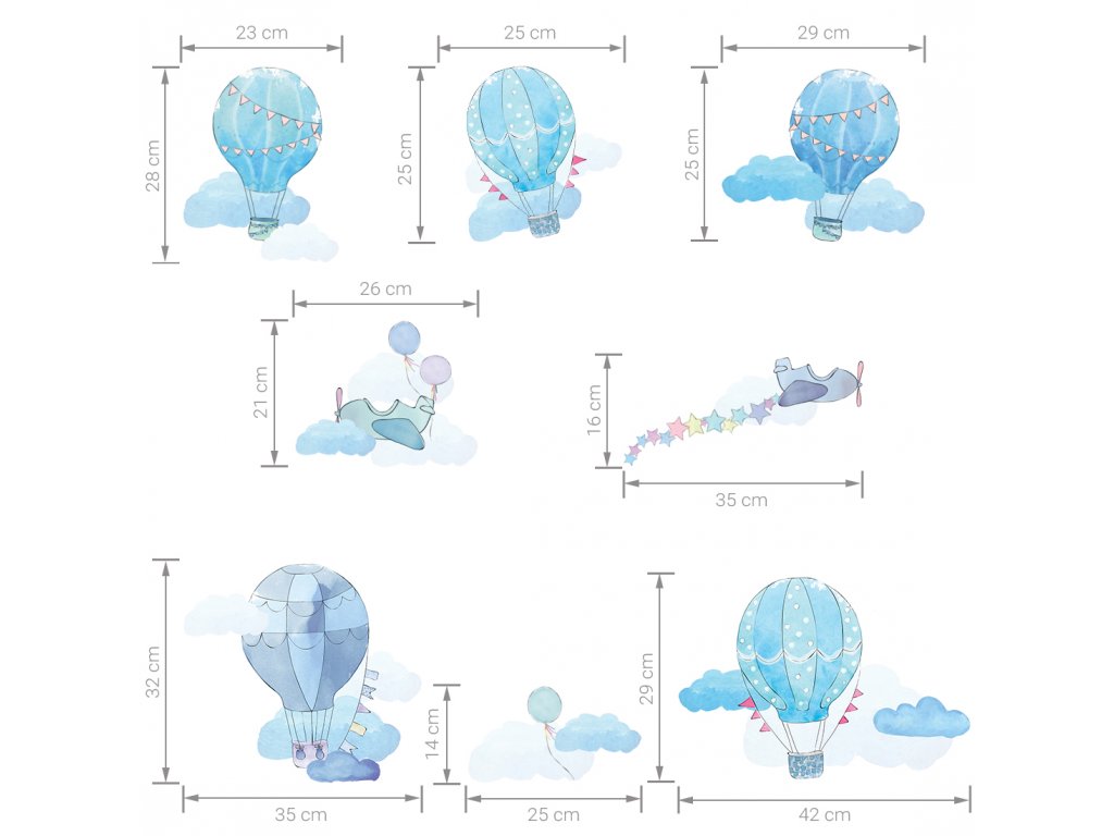 Nálepky na stěnu do dětského pokoje BALÓNY modré