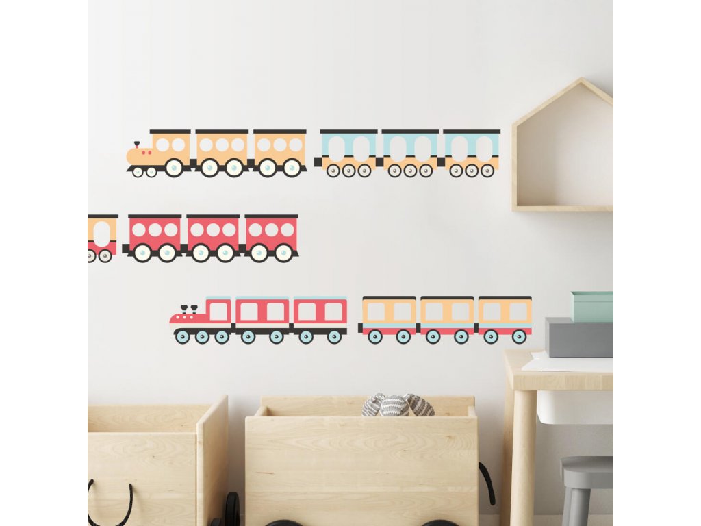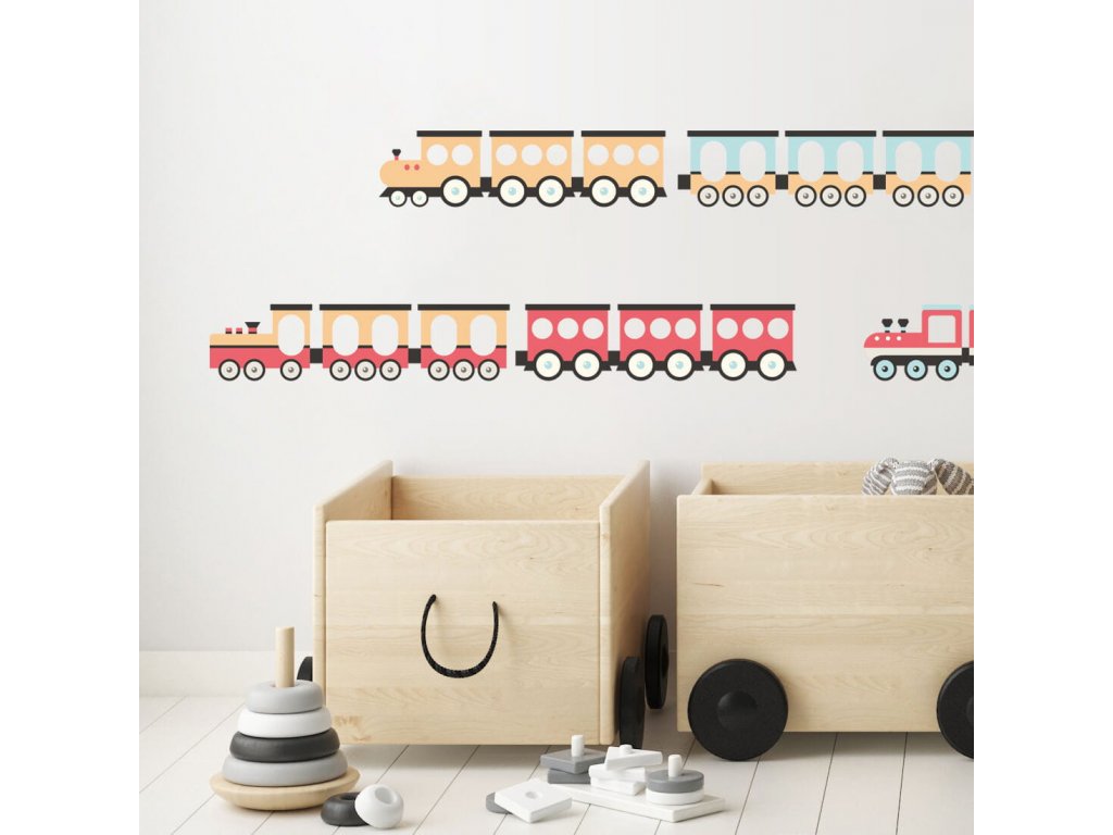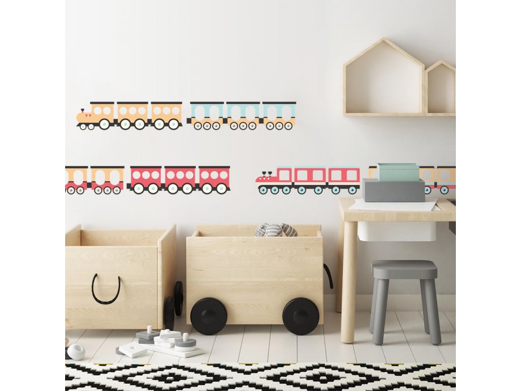 Nálepky na stěnu VLAKY do dětského pokoje ČERVENÉ