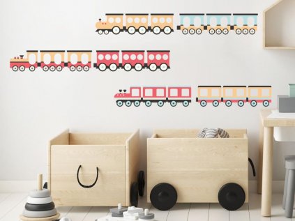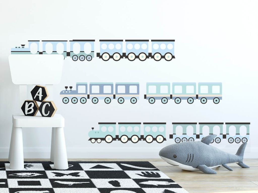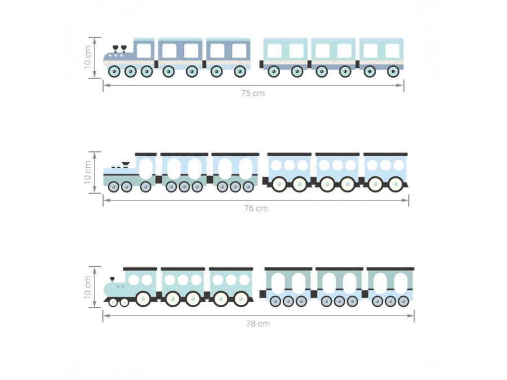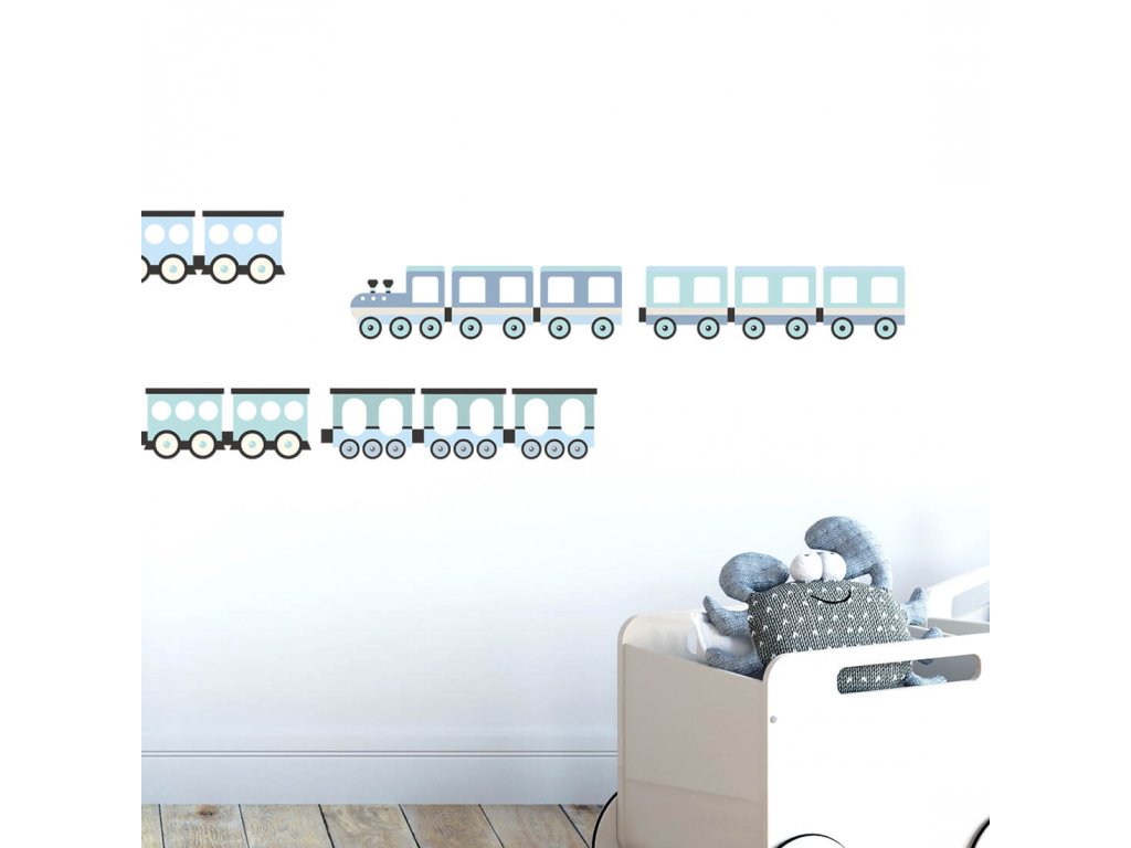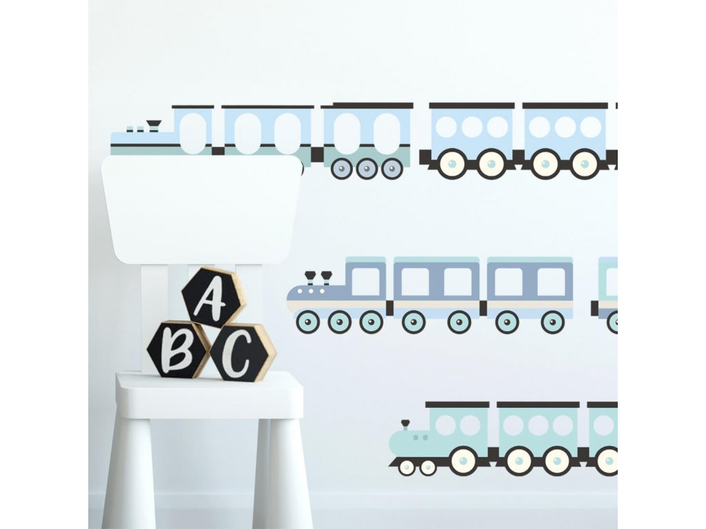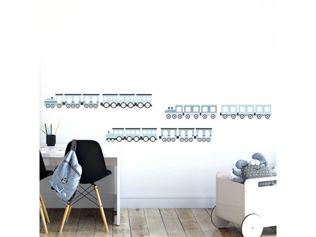 Nálepky na stěnu VLAKY do dětského pokoje MODRÉ