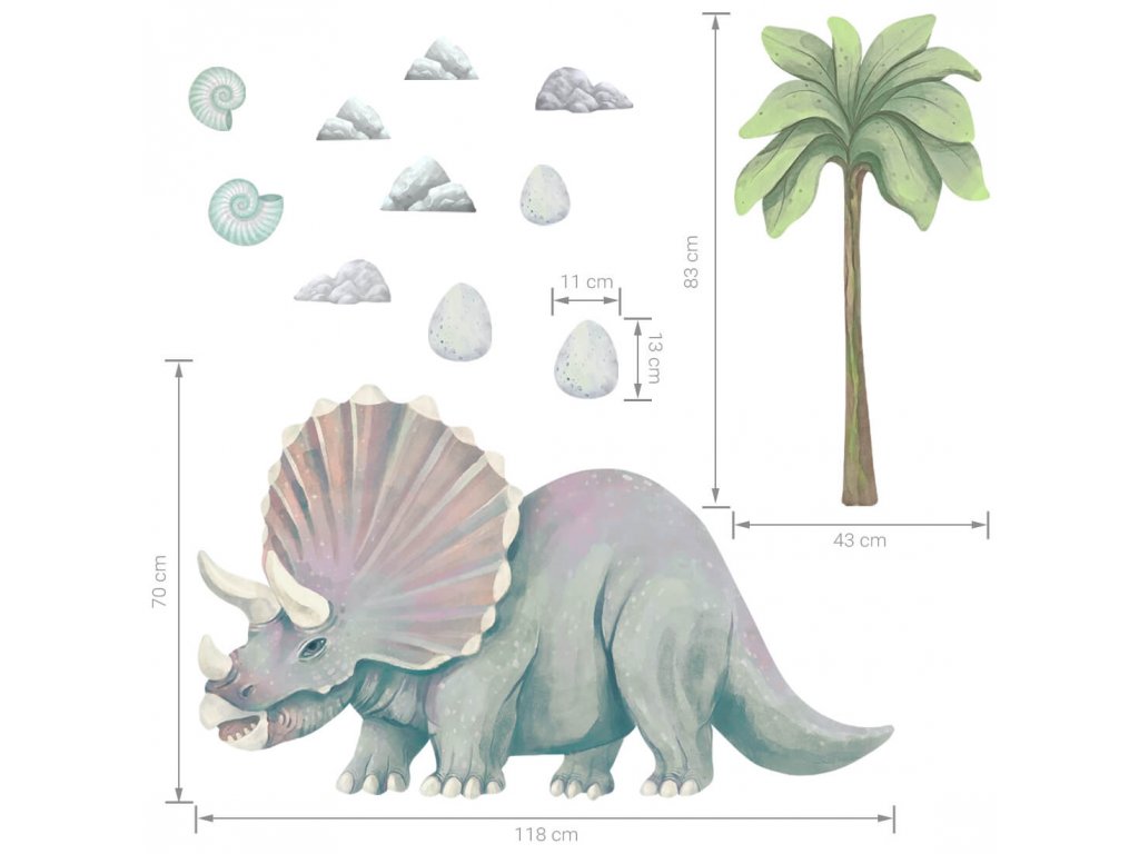 Nálepky na zeď do dětského pokoje TRICERATOPS
