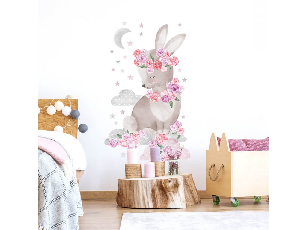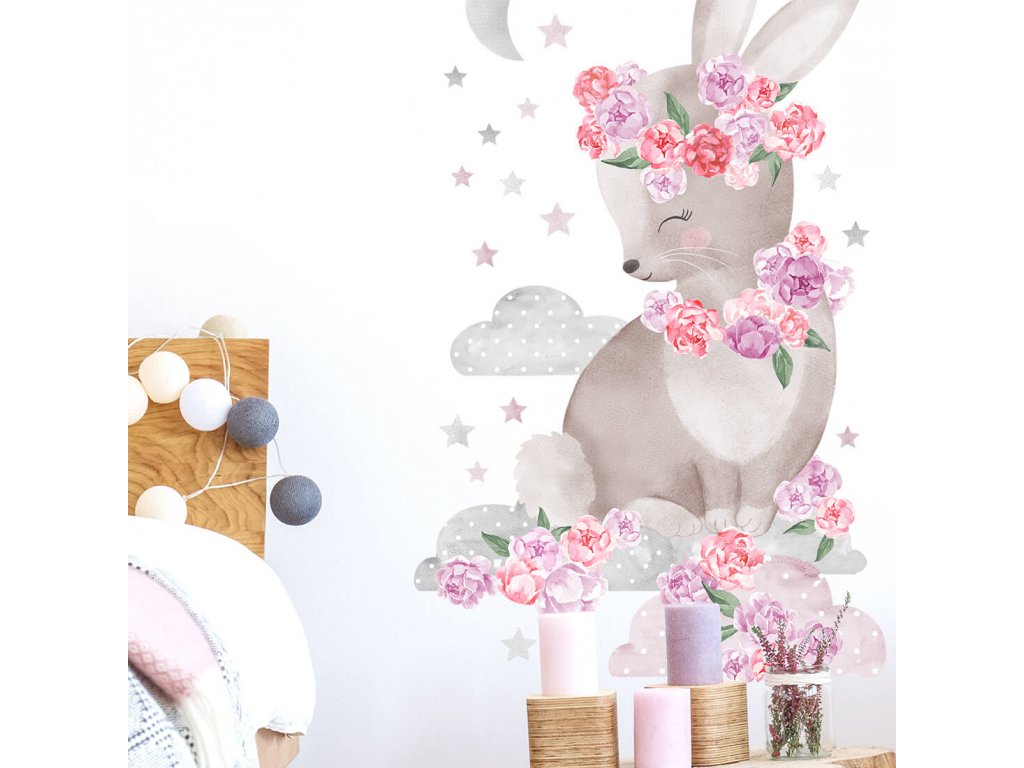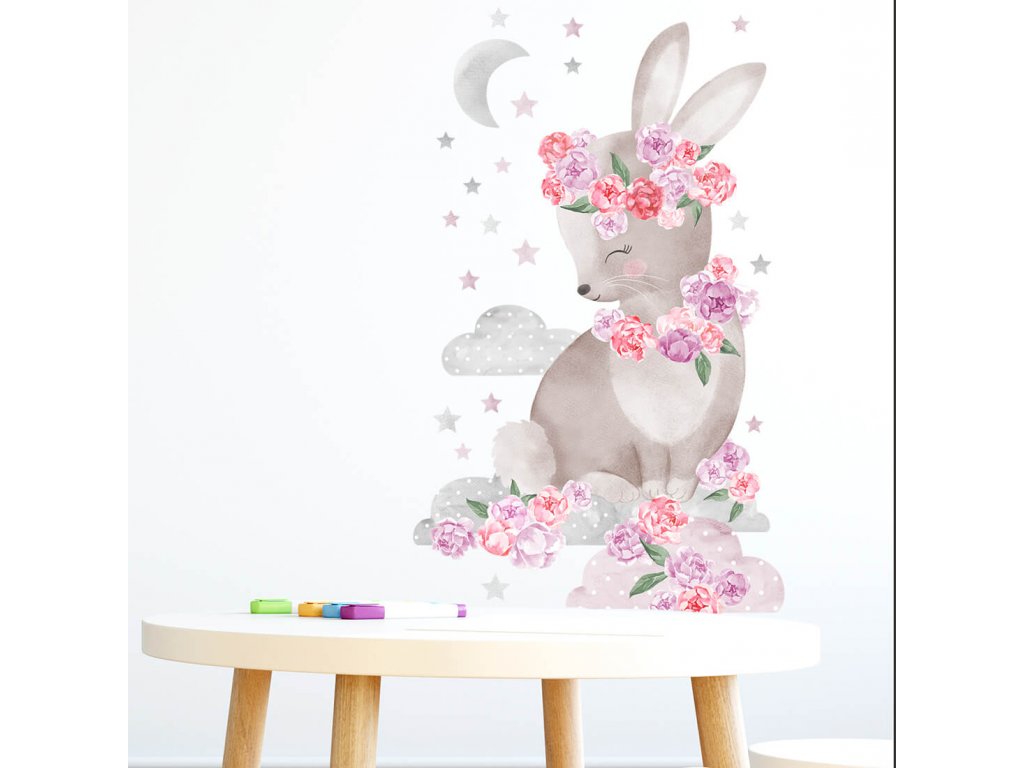 Nálepky na zeď KRÁLÍČEK do dětského pokoje RŮŽOVÝ