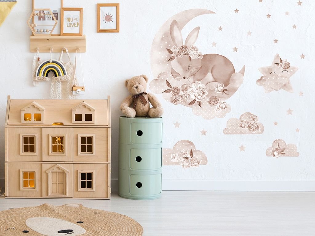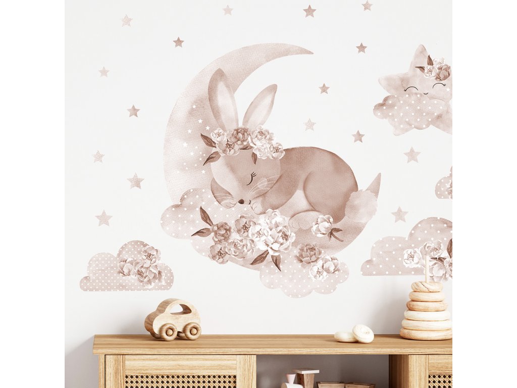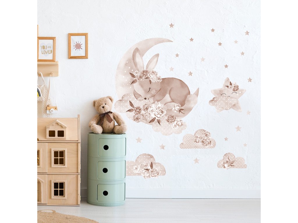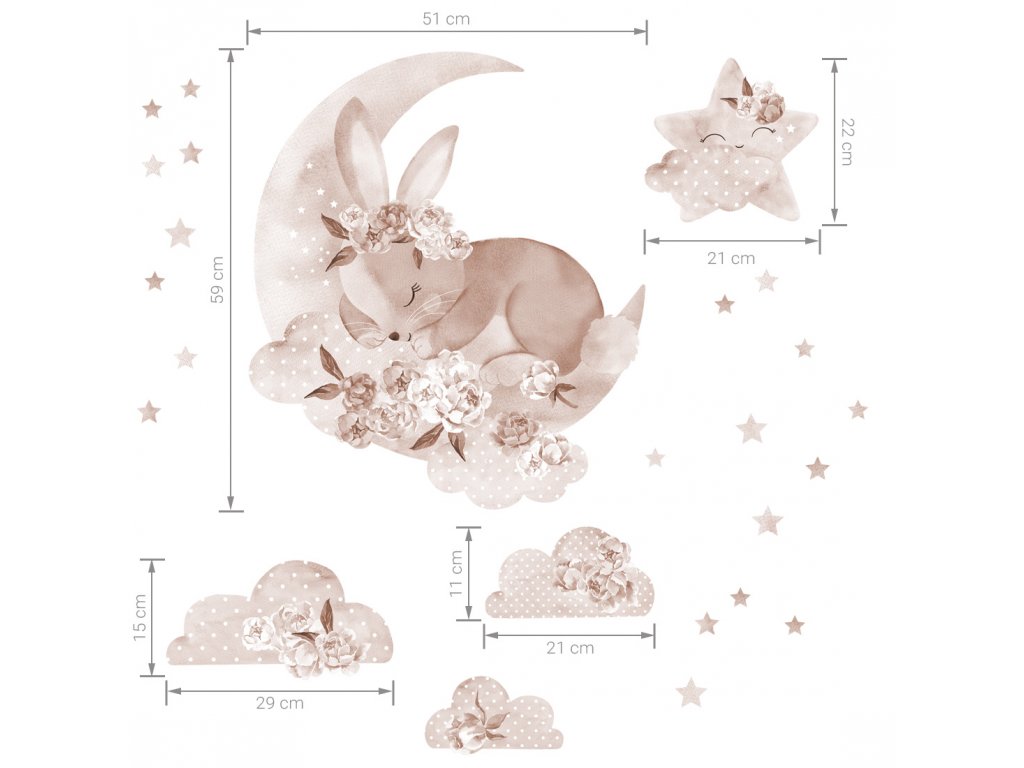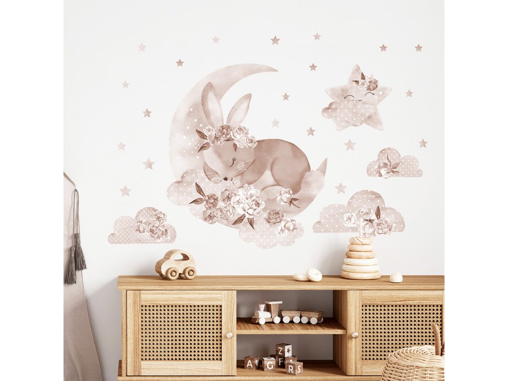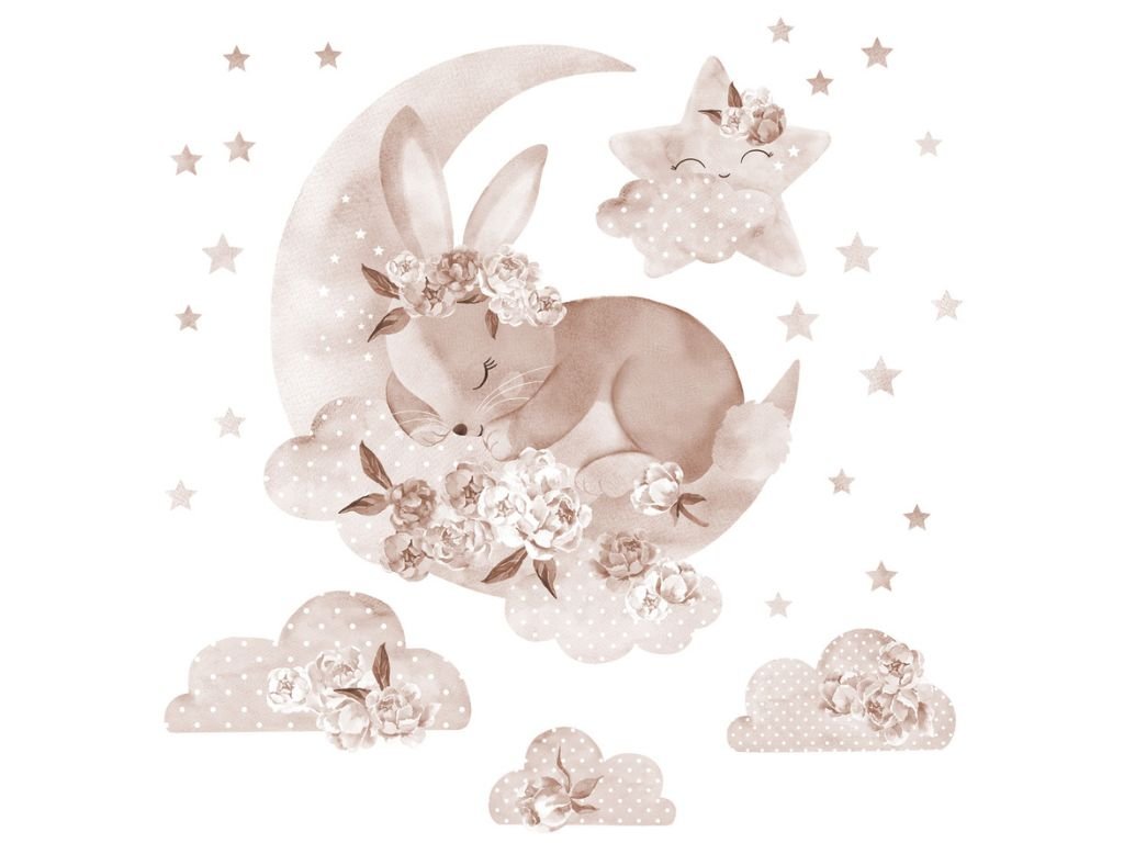 Nálepky na zeď SPÍCÍ KRÁLÍČEK do dětského pokoje BÉŽOVÝ