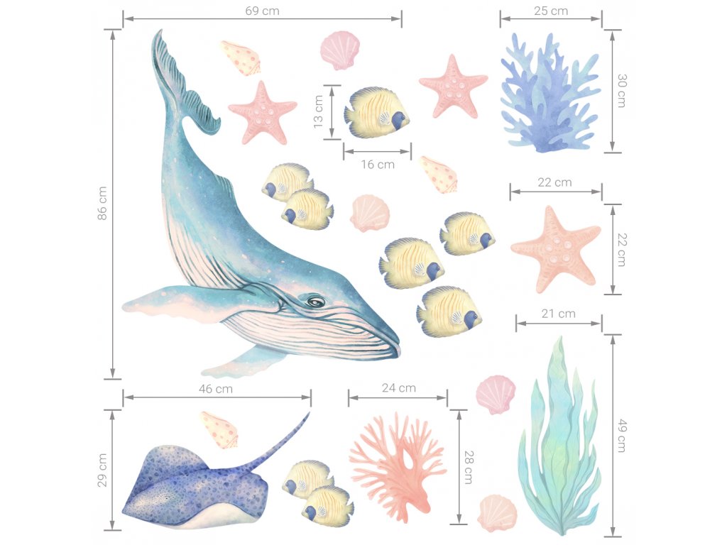 | Sada obsahuje: | velrybu, rejnoka, rybu, hvězdici, mušle, korály a mořské řasy |