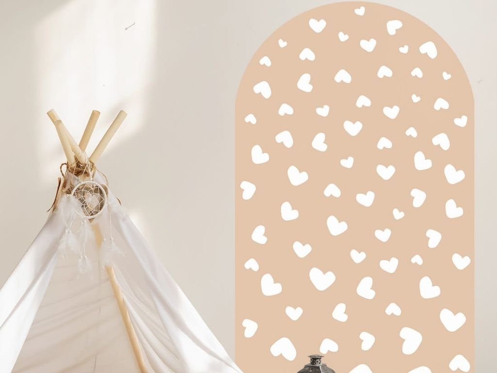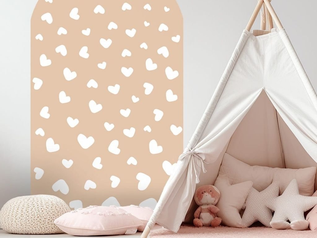 Nástěnná samolepka OBLOUK do dětského pokoje SRDCE béžová