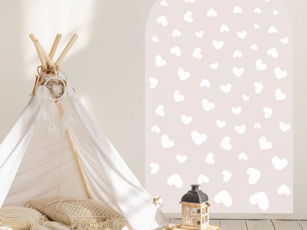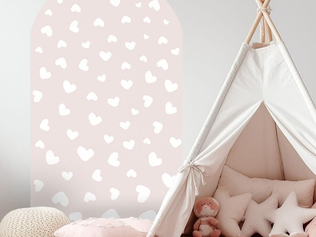 Nástěnná samolepka OBLOUK do dětského pokoje SRDCE růžová