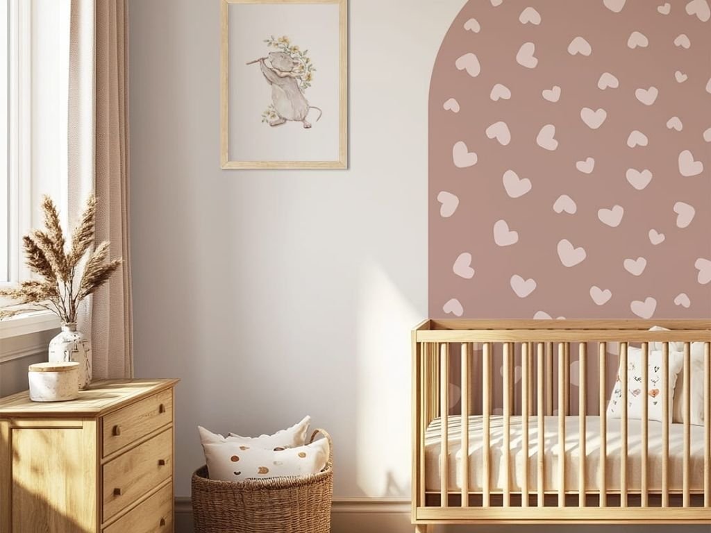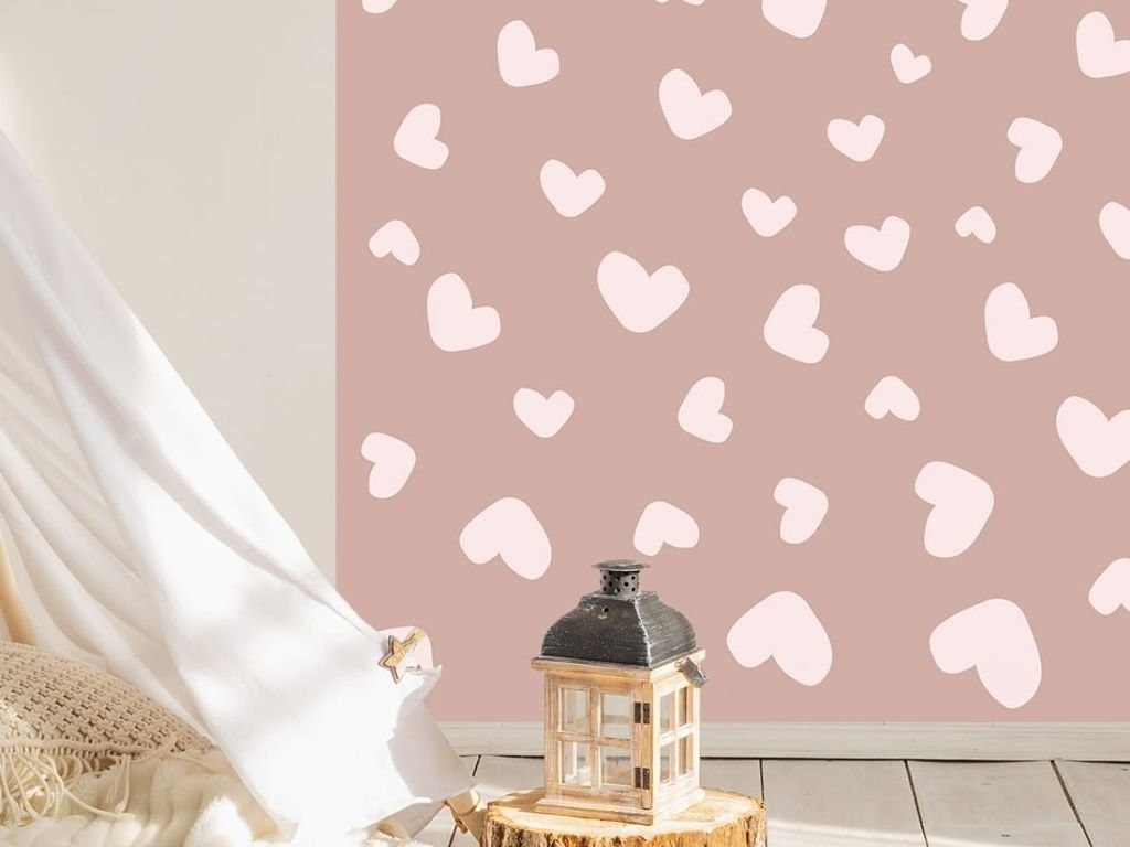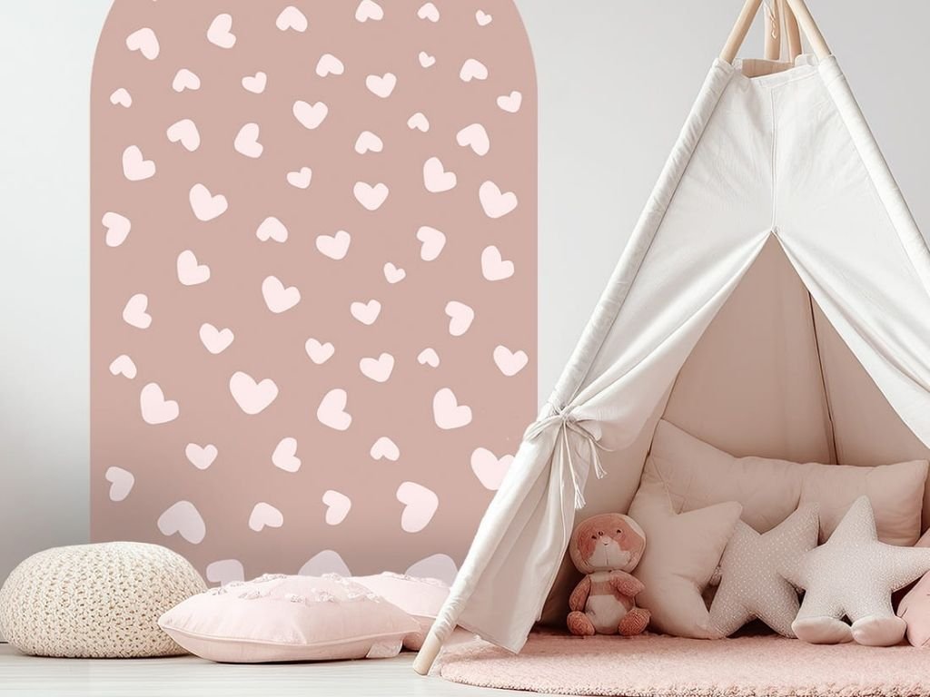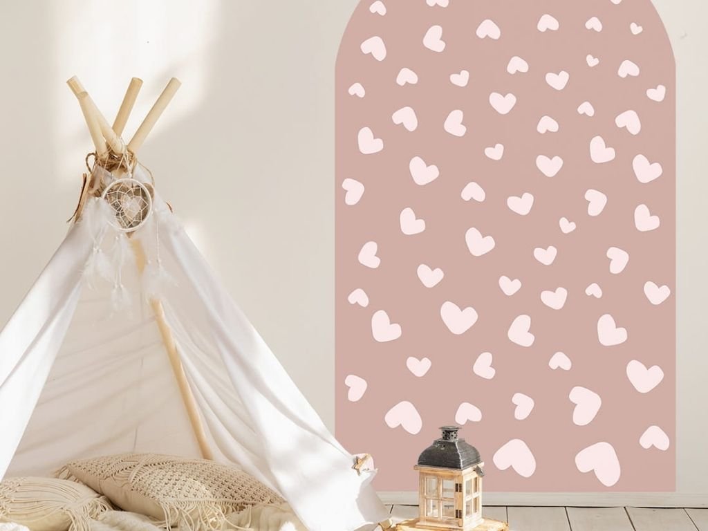 Nástěnná samolepka OBLOUK do dětského pokoje SRDCE starorůžová