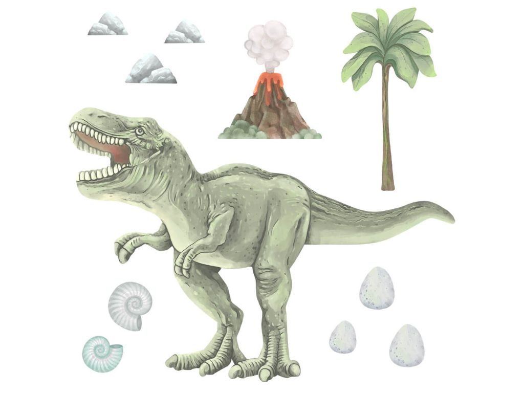 | Sada obsahuje: | dinosaura T-REXE, sopku, 3 kameny, 3 vejce, 2 skořápky, palmu |