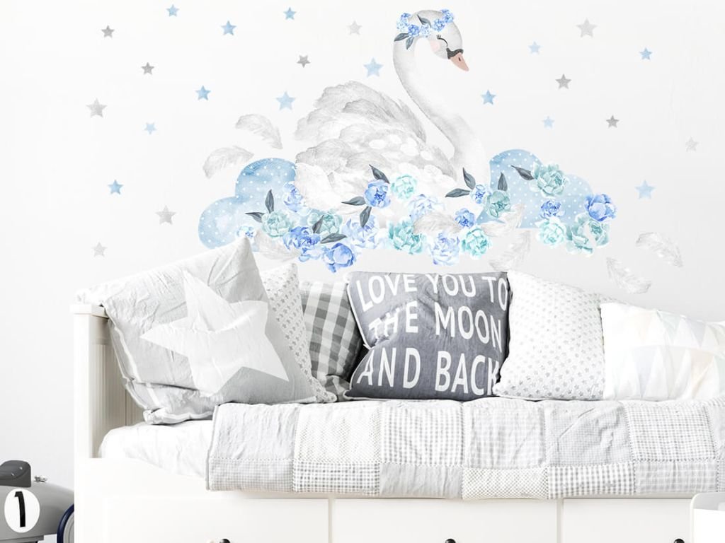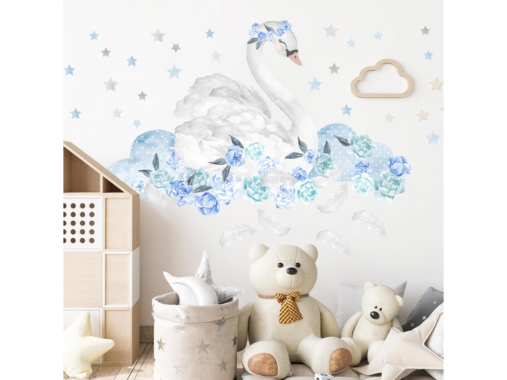 Nástěnné samolepky LABUŤ do dětského pokoje MODRÁ