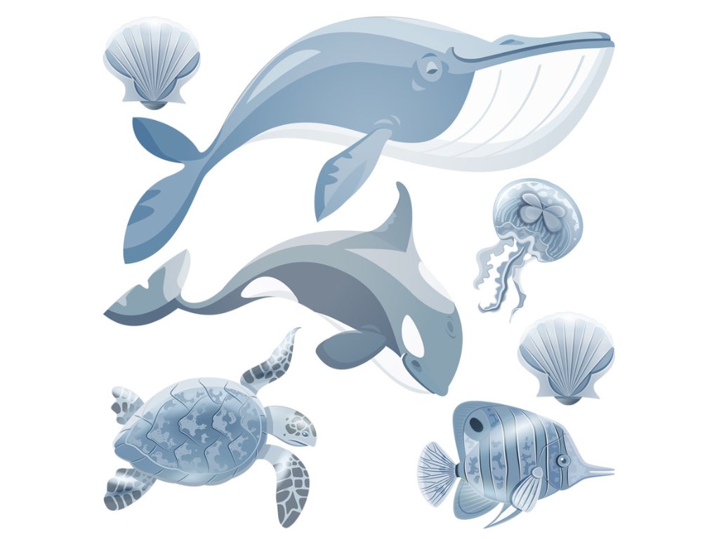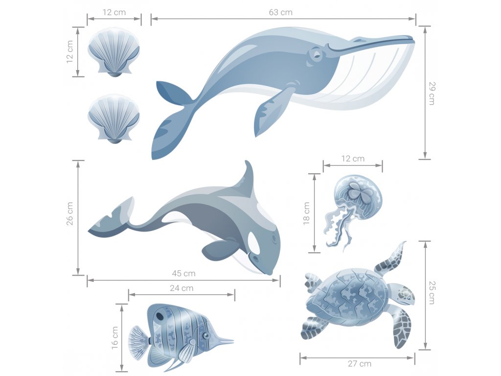 | Sada obsahuje: | Velryba, želva, ryby, medúzy, mušle |