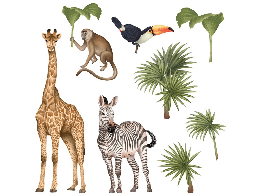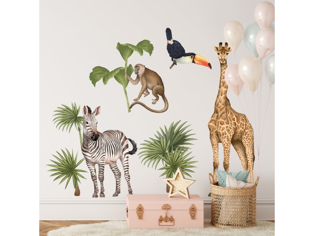 | Sada obsahuje: | žirafu, tukana, opici s listem, zebru, 4 listy |