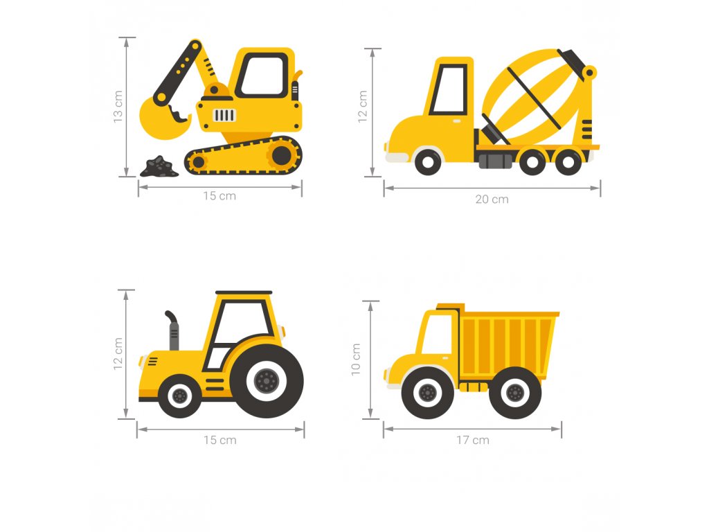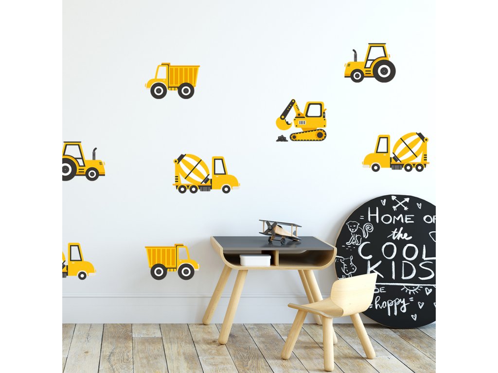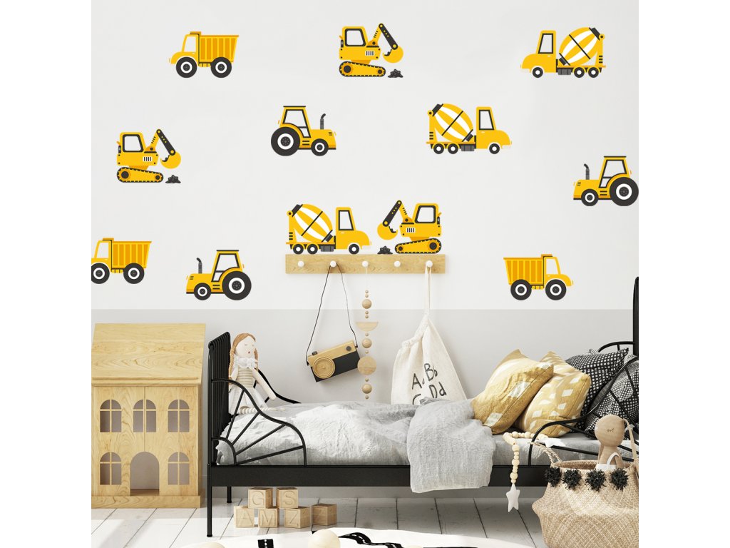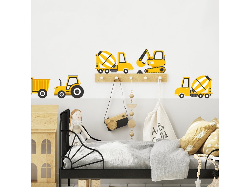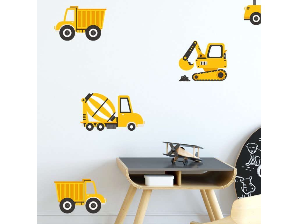 Nástěnné samolepky STAVEBNÍ AUTA žluté