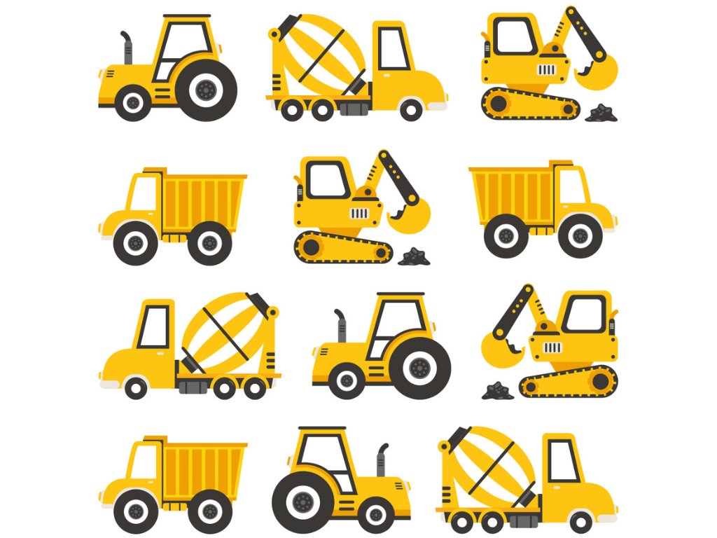 | Sada obsahuje: | 3 bagry, 3 domíchávače betonu, 3 traktory a 3 sklápěče |