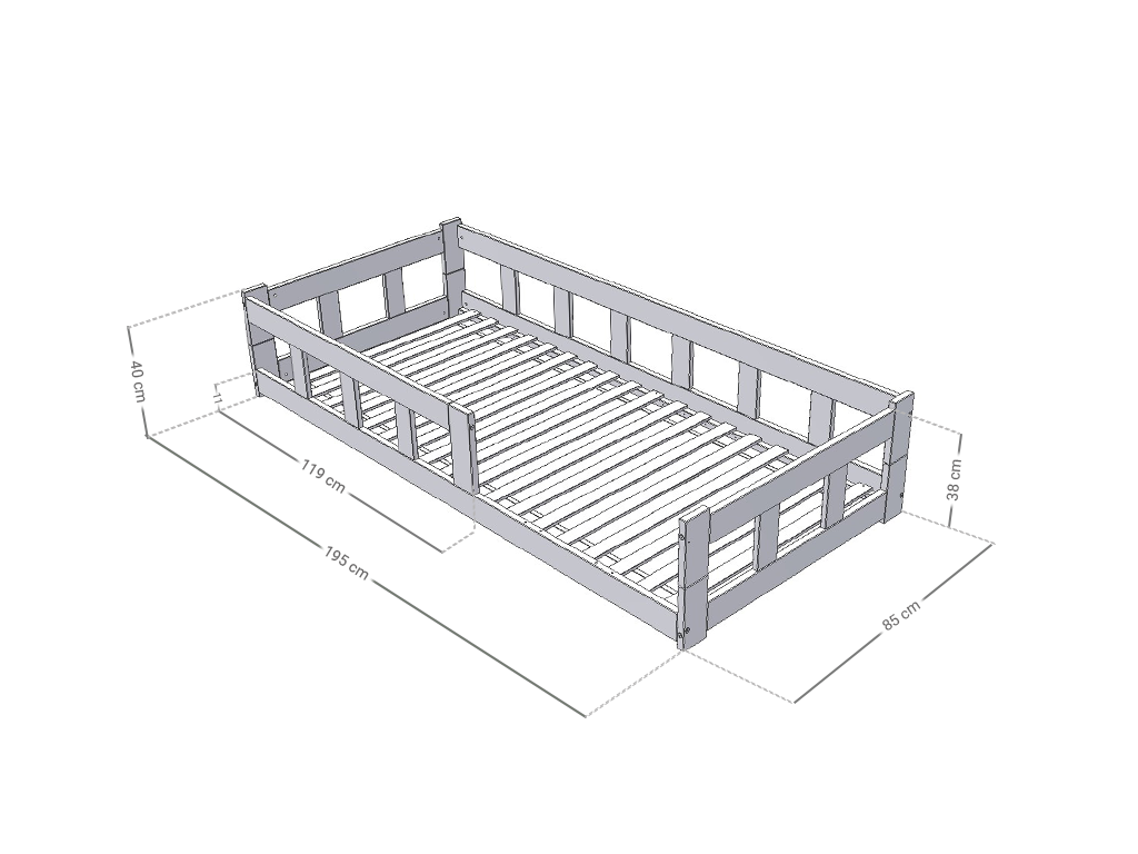 Nízká jednolůžková postel FENCE 4v1 se zábranou