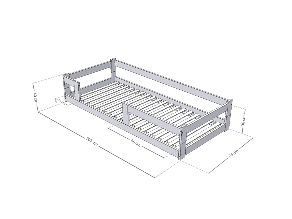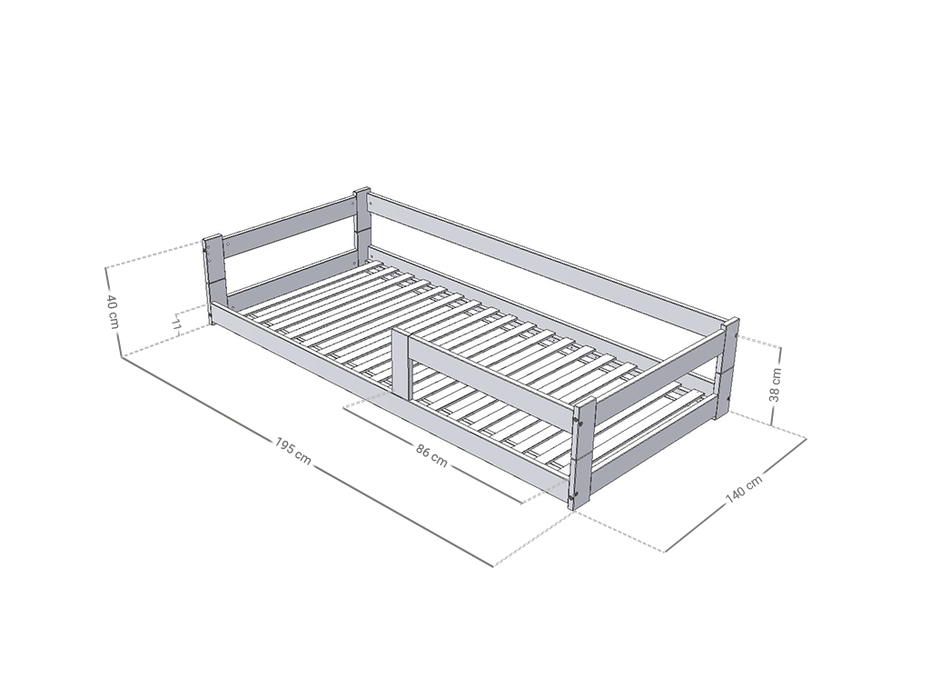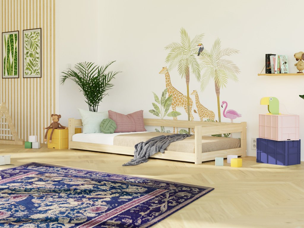 Nízká jednolůžková postel ze dřeva SAFE 5v1 se zábranou