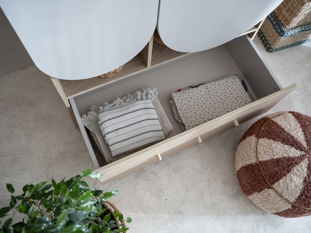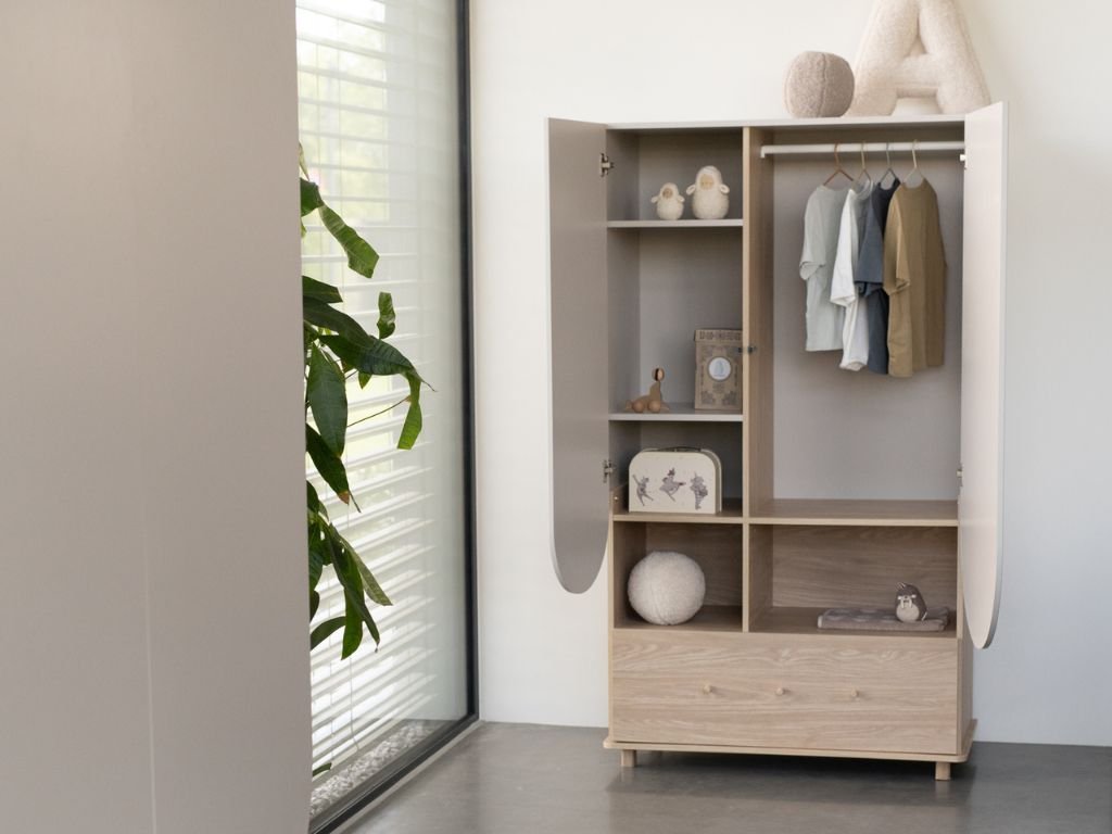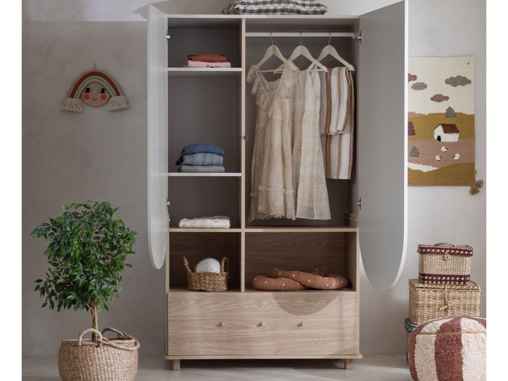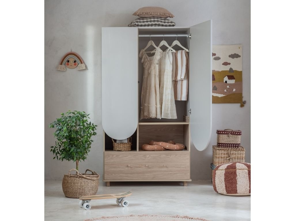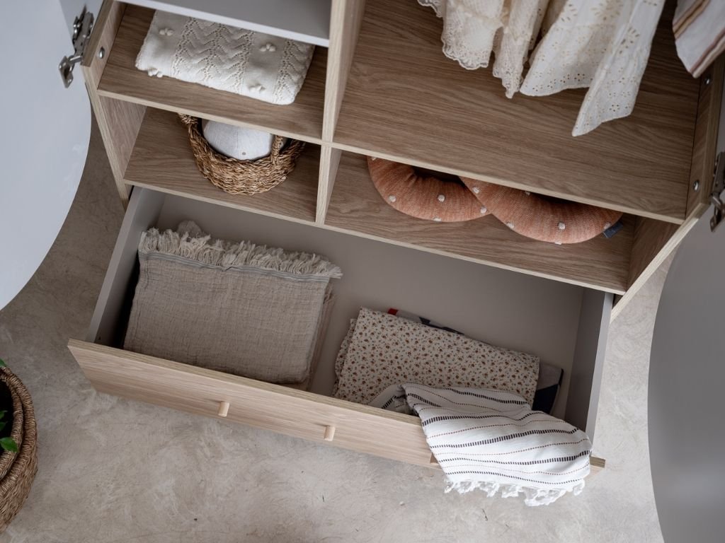 Nízká šatní skříň s policemi, šatní tyčí a šuplíkem BLOOM