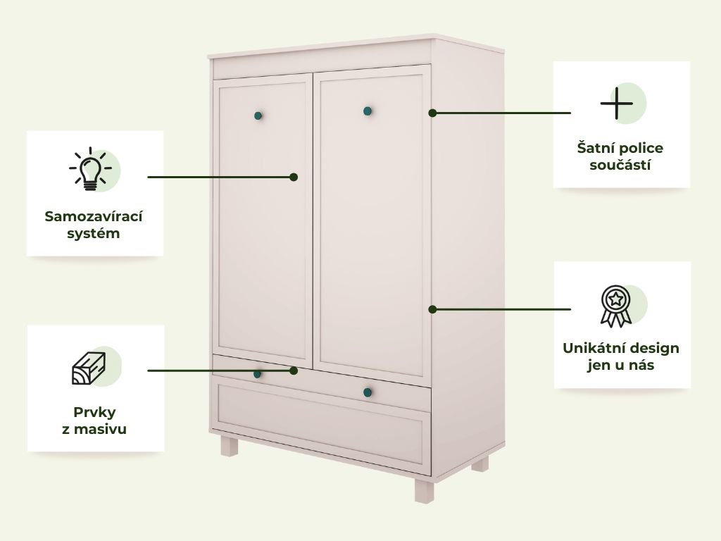 Nízká šatní skříň s policemi VINTAGE kašmírová